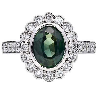 - > Natural Teal Sapphire 1.69ct & Diamond 0.54ct Flower Shaped Cluster Ring