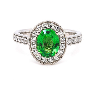 - > Natural Tsavorite 1.26ct & Diamond 0.37ct Oval Shaped Cluster Ring
