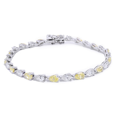 - > Natural Yellow Diamond 4.49ct & Diamond 4.18ct Pear Cut Cluster Bracelet