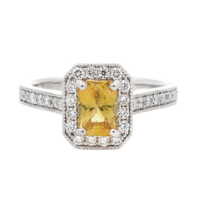 - > Natural Yellow Sapphire 1.07ct & Diamond 0.33ct Emerald Shaped Cluster Ring