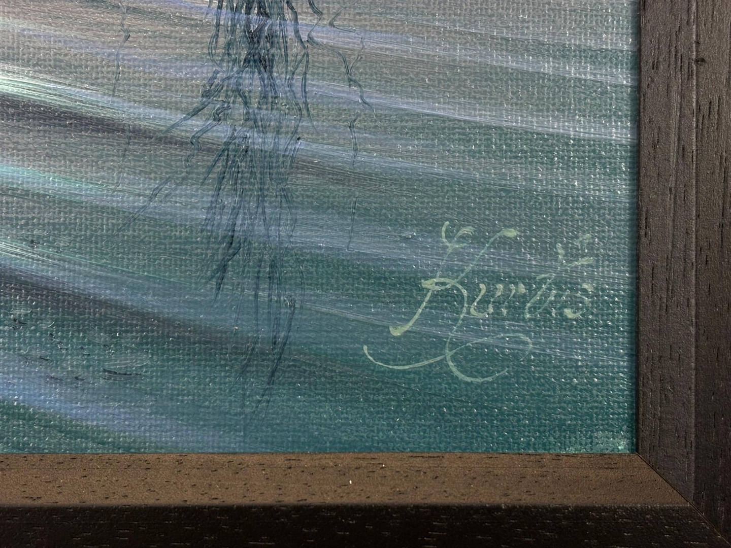 A well-proportioned artwork measuring approximately 10 inches in height and 8 inches in width, presented in a bold, dark frame that complements the tonal depth of the painting. A highly decorative and collectible piece, ideal for lovers of peaceful landscapes and Kurtis’ atmospheric style.
