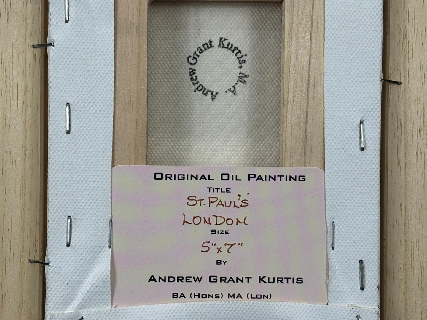 A framed original oil painting by Andrew Grant Kurtis titled 'St Pauls's London'. Approx 7" height, 5" width.