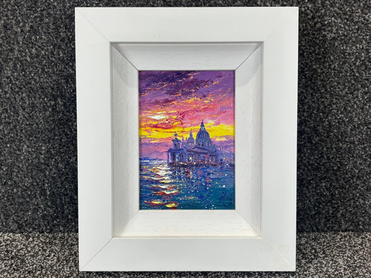 A compact yet impactful artwork measuring approximately 7 inches in height and 5 inches in width, presented in a clean, contemporary frame. A highly collectible and decorative piece, ideal for admirers of Venice scenes and Kurtis’ atmospheric landscapes.