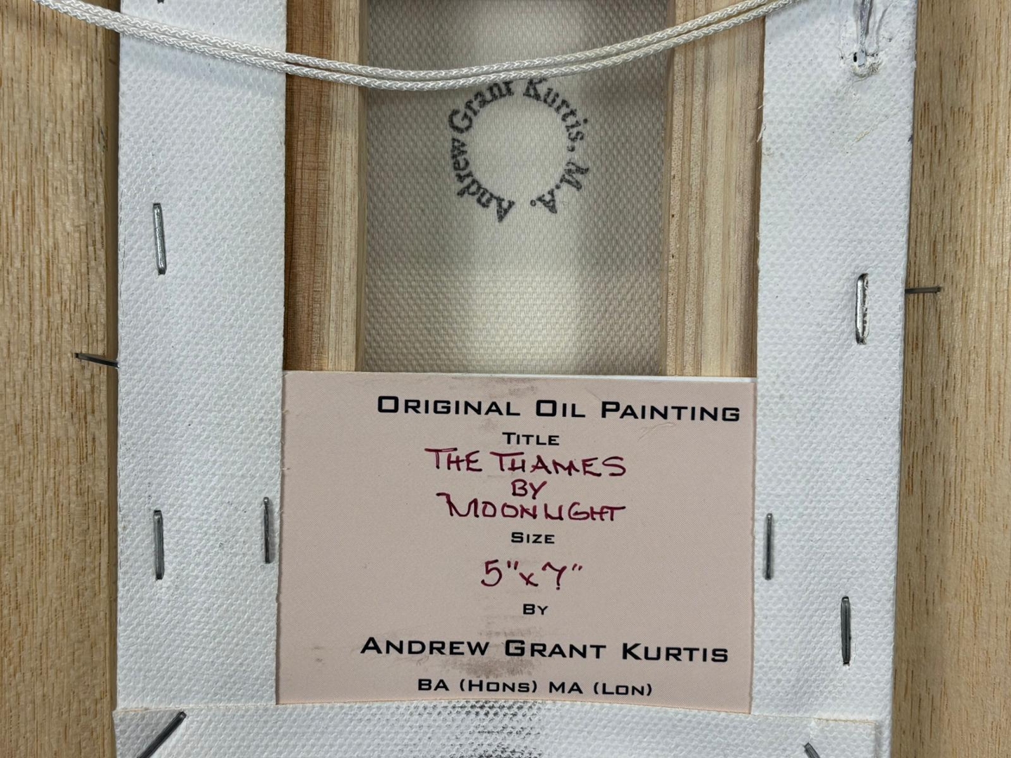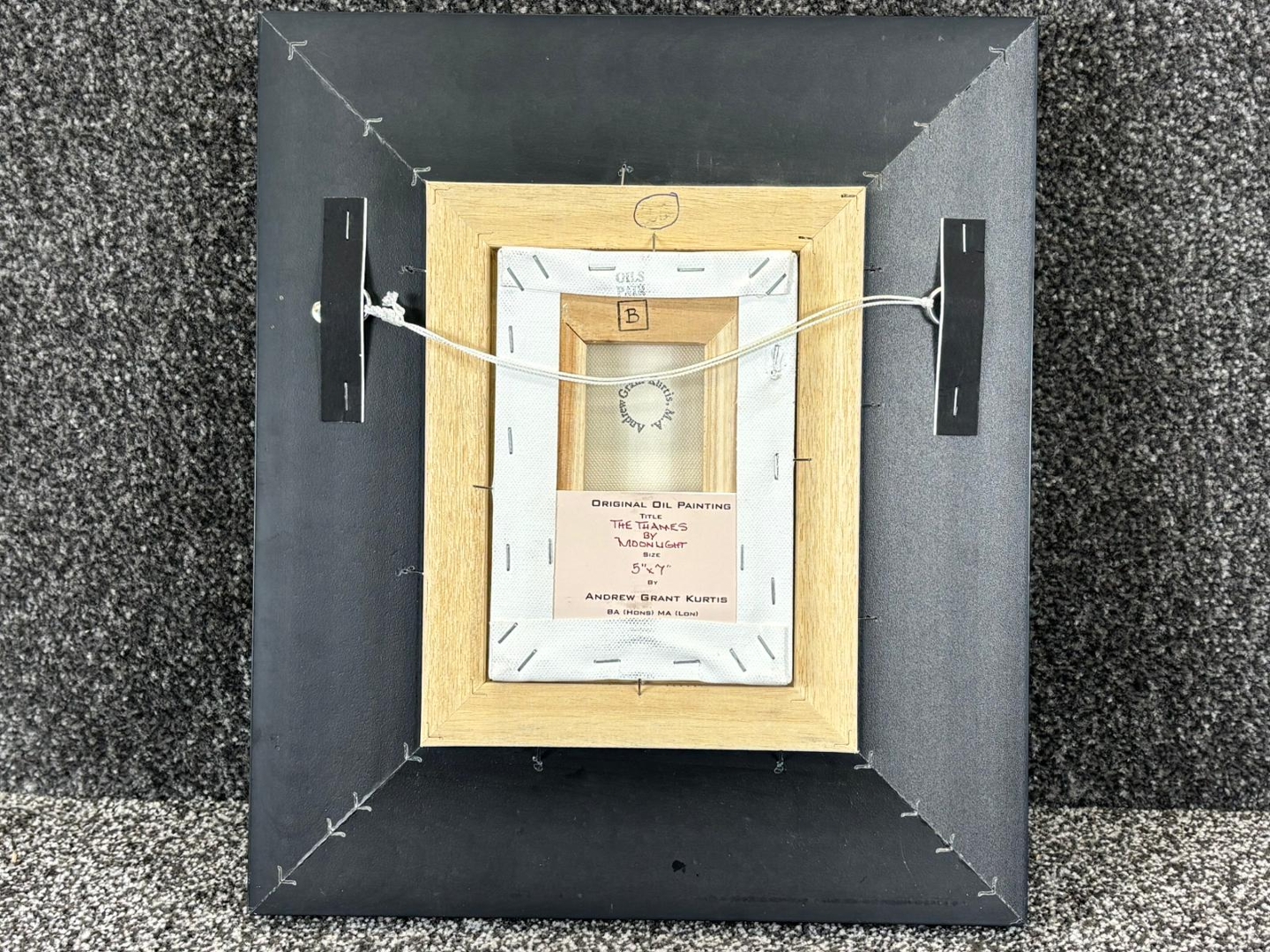 A framed original oil painting by Andrew Grant Kurtis titled 'The Thames By Moonlight'. Approx 7" height, 5" width.