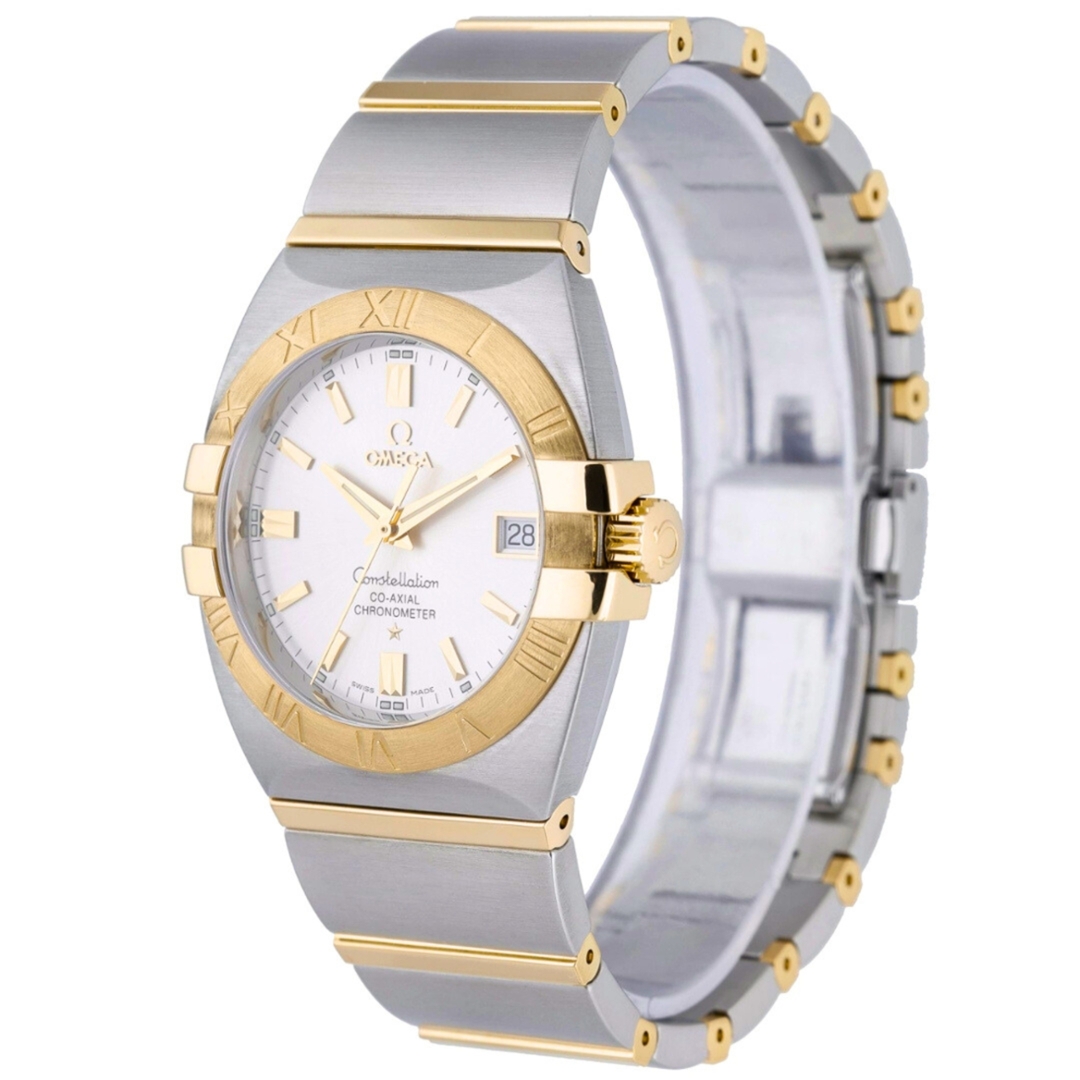 An Omega Constellation reference 1201.30.00, crafted in stainless steel and 18ct yellow gold, representing one of Omega’s most recognisable and enduring designs. The 35mm case features the iconic Constellation claws and a brushed yellow gold bezel engraved with Roman numerals, paired with a silver dial and applied gold-tone markers for a refined, balanced appearance.