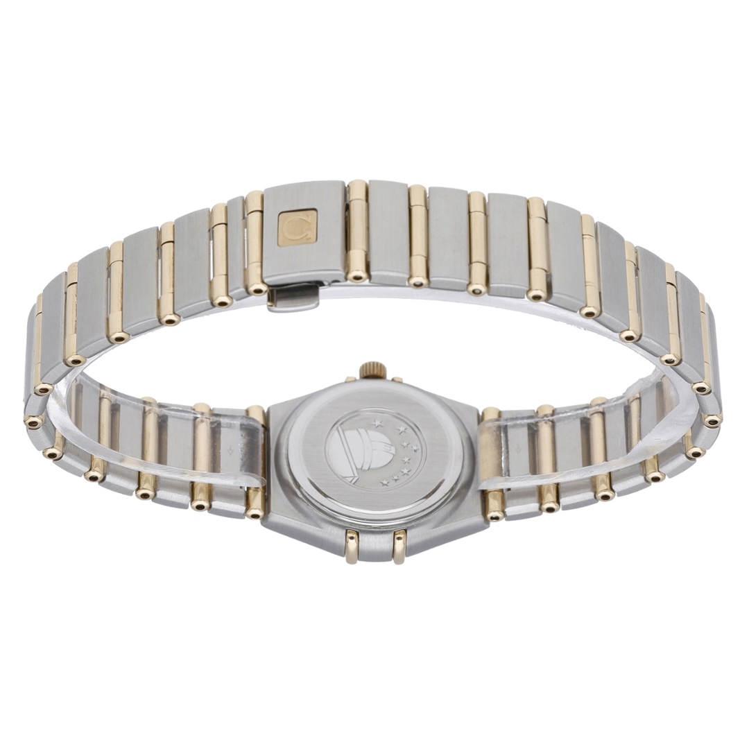 This Omega Constellation reference 1262.10.00 features a compact 22mm stainless steel case, complemented by a yellow gold Roman numeral bezel and an integrated bi-metal bracelet. The champagne dial features applied baton hour markers and matching gold hands, framed by a sapphire crystal. The distinctive Constellation claws and slim profile reflect the refined design language associated with this long-running collection.