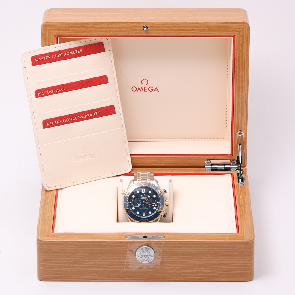 The watch comes complete with its original Omega paperwork, boxed and fully certified, along with a 12-month WLC Warranty for complete confidence. An outstanding opportunity to secure a modern Seamaster in a highly sought-after steel-and-gold configuration.