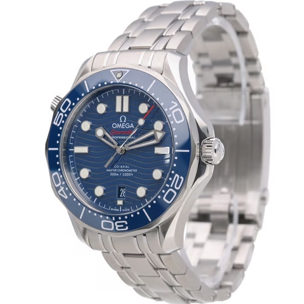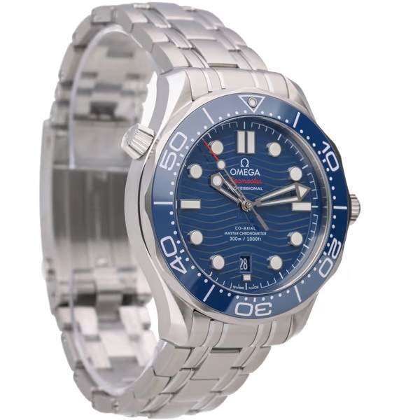 An Omega Seamaster Diver 300m, model 210.30.42.20.03.001, is a remarkable blend of performance, precision, and style. Featuring a robust stainless steel case paired with a striking blue bezel and dial, this 42mm timepiece exudes sporty appeal and refined luxury. The bold design ensures it stands out, while the size remains versatile for everyday wear or underwater exploration.