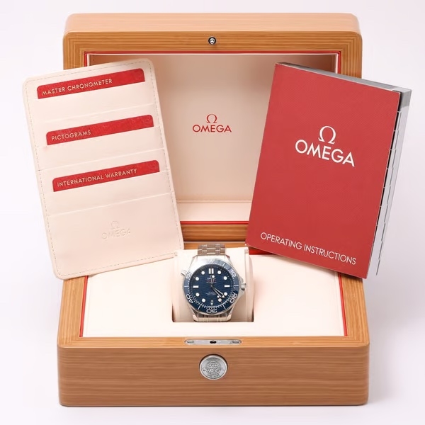 This 2022 model is immaculate, showcasing its meticulous care and Omega's renowned craftsmanship. The watch comes with its original Omega paperwork and is presented in a certified box, further enhancing its appeal to collectors. With the Omega manufacturer's warranty still valid until 2027, you can enjoy peace of mind alongside this stunning timepiece. Whether you're a seasoned diver or a connoisseur of fine watches, the Omega Seamaster Diver 300m is a perfect addition to any collection.