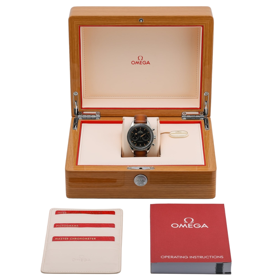 Originally from 2024 and supplied with its original Omega paperwork, this example is offered boxed and certified, with Omega manufacturer warranty running until 2029. A strong contemporary interpretation of the Speedmaster line, this ’57 appeals to collectors seeking everyday usability alongside enduring design and proven mechanical performance.