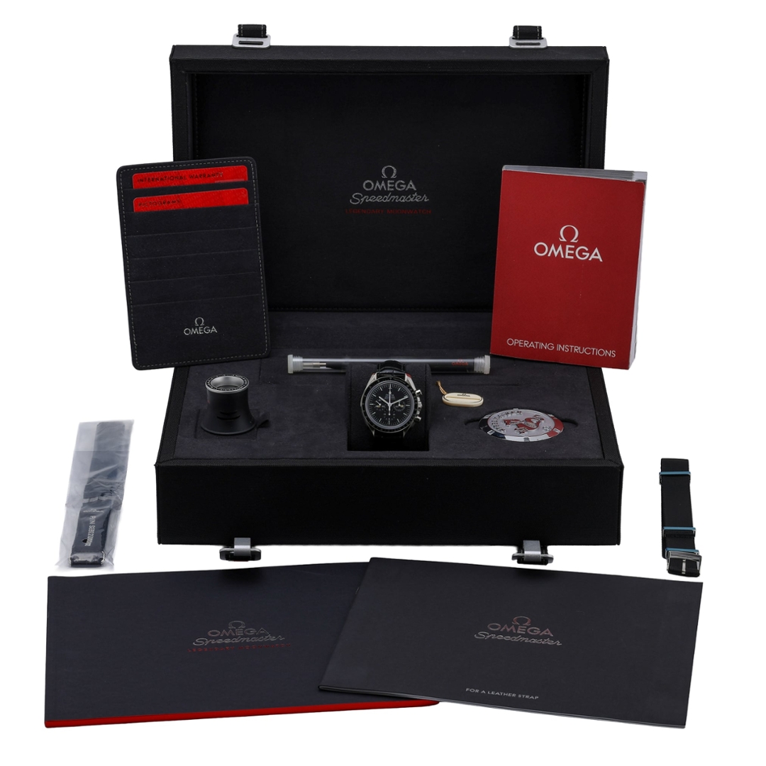 Powered by the Omega Calibre 1861 manual-wind movement, this chronograph offers reliable precision and the traditional mechanical experience that enthusiasts value. The cam-operated chronograph architecture ensures dependable performance, while the manual winding function maintains the authentic Moonwatch connection to its spacefaring heritage.