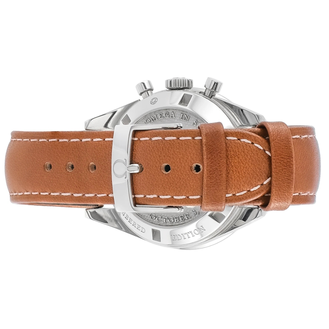 Powered by a manual-wind Omega chronograph movement, this model stays true to the Speedmaster’s historical roots, offering a tactile and engaging wearing experience. The robust stainless steel case and precise chronograph functionality ensure dependable performance, while the leather strap adds warmth and character, making it equally suited to casual or more refined settings.