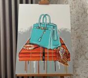 An original painting by the artist Liam Jacobi of a Hermes Hand Grenade.