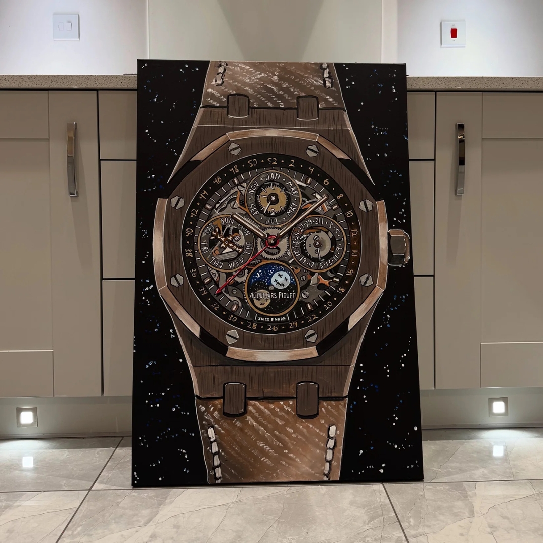 - > Original Painting by the Artist Liam Jacobi of an Audemars Piguet Royal Oak Cactus Jack Watch.