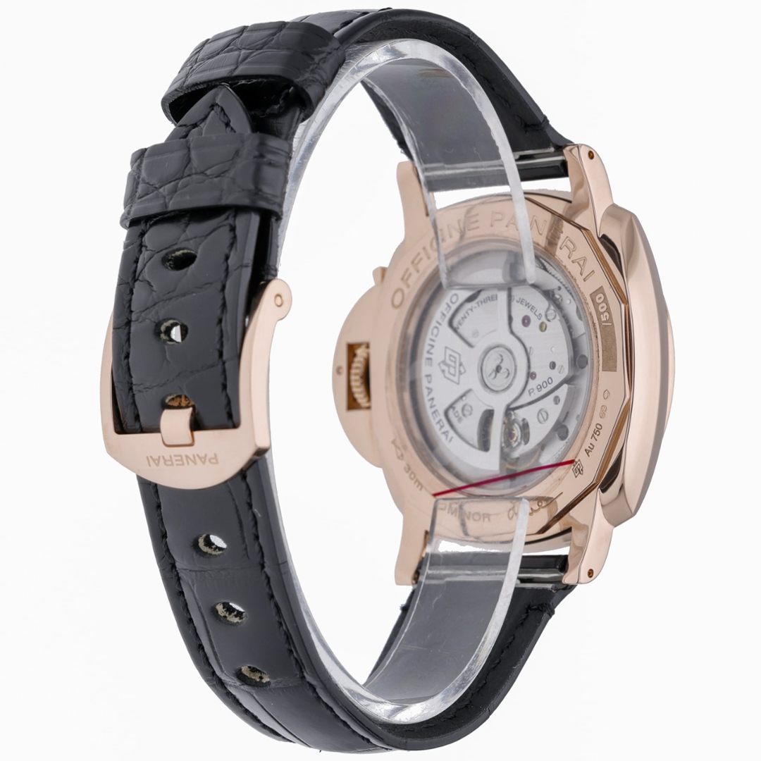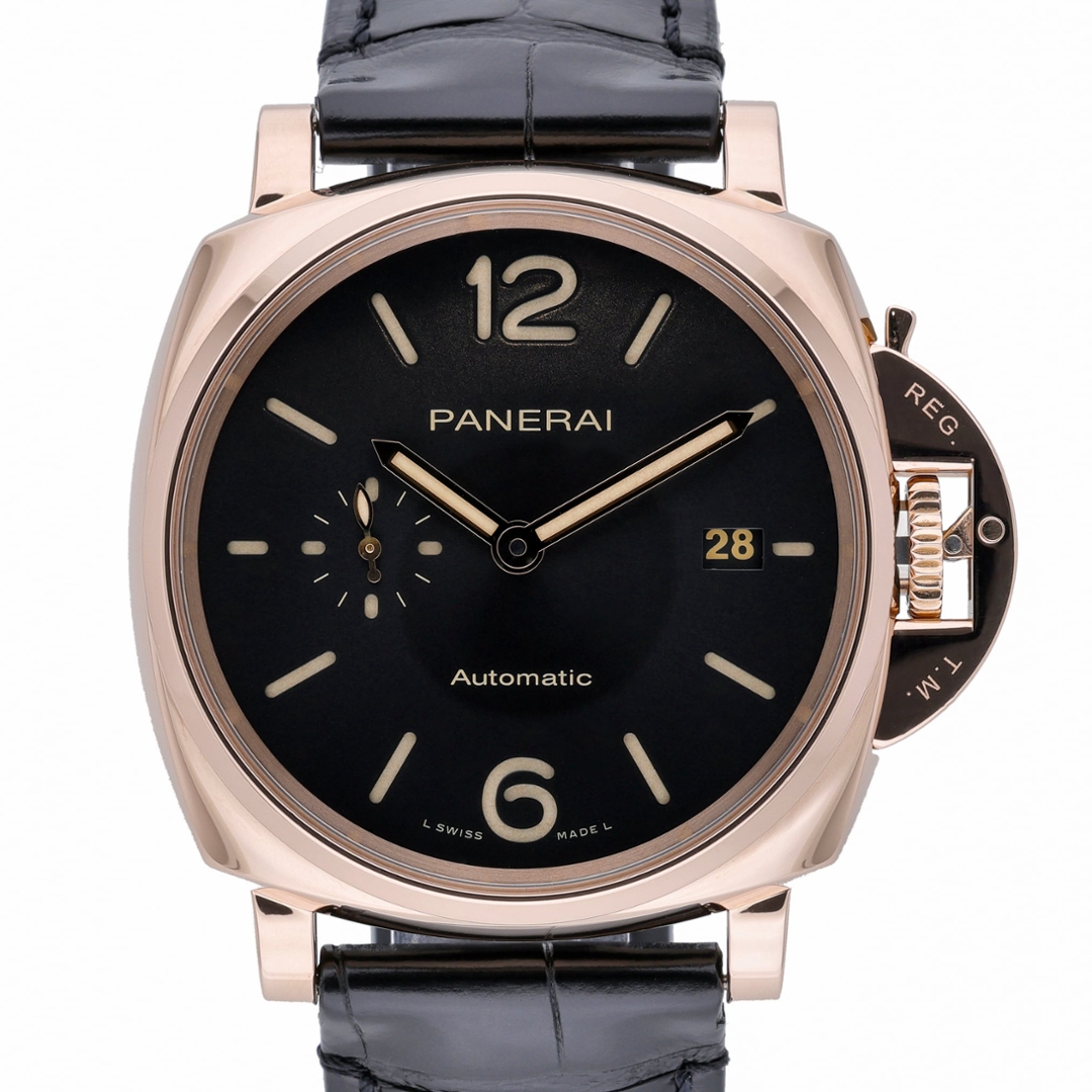 A Panerai Luminor Due Watch, Black Leather Strap with an 18ct Rose Gold Case & Clasp and a Black Dial