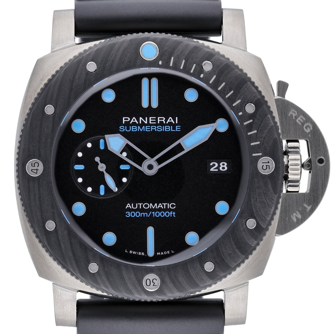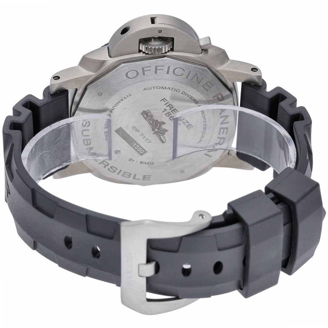 A Panerai Luminor Submersible Watch, Black Rubber Strap with a Titanium Case and Clasp on a Black Bezel and Dial