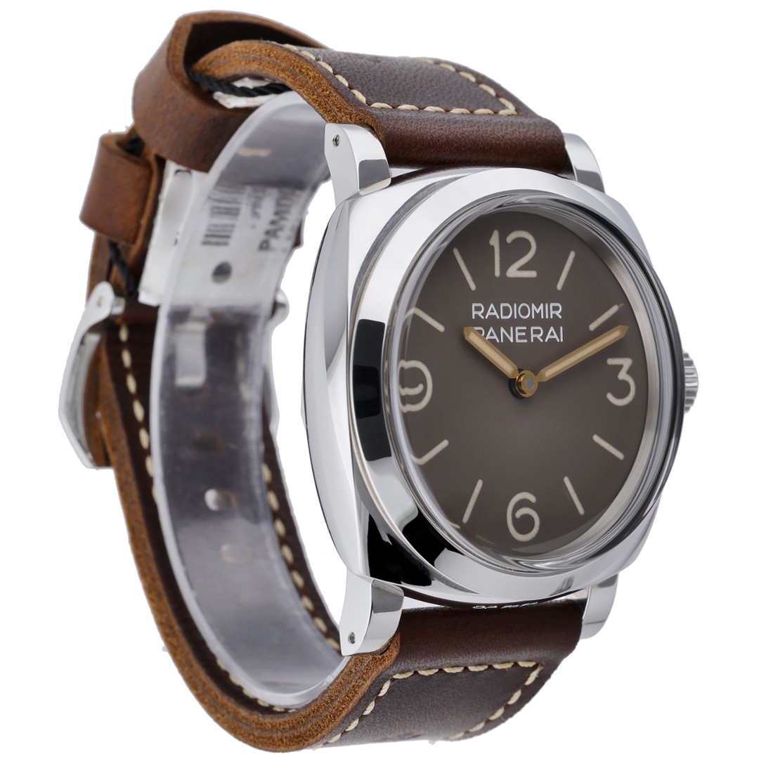 A Panerai Radiomir Watch, Brown Leather Strap with a Stainless Steel Case & Clasp on a Brown Dial