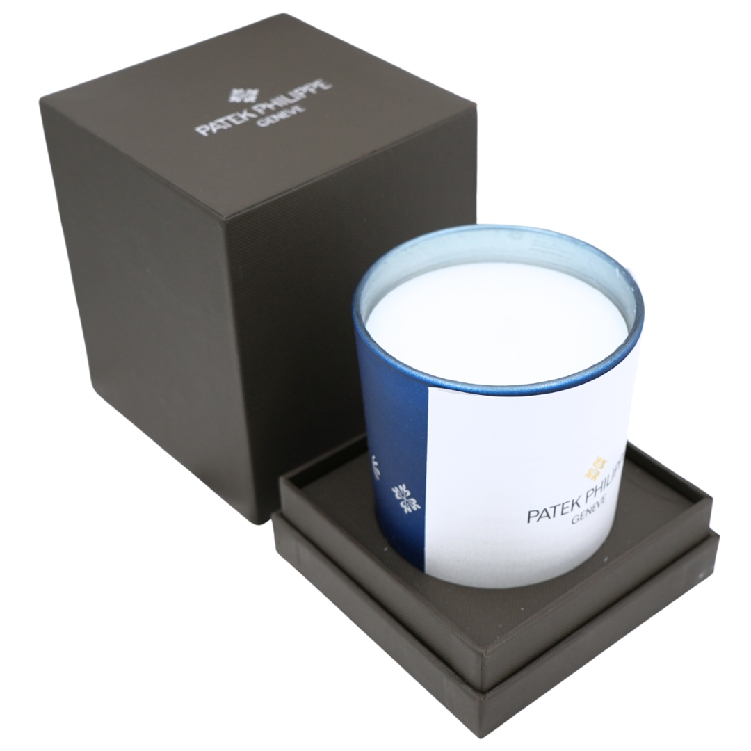 Designed as a lifestyle accessory, the candle features a clean white wax interior housed within a substantial glass container, offering both visual appeal and a sense of luxury. The balanced proportions and understated decoration reflect Patek Philippe’s philosophy of refinement and restraint, making it equally suitable for display or use in a refined living space.