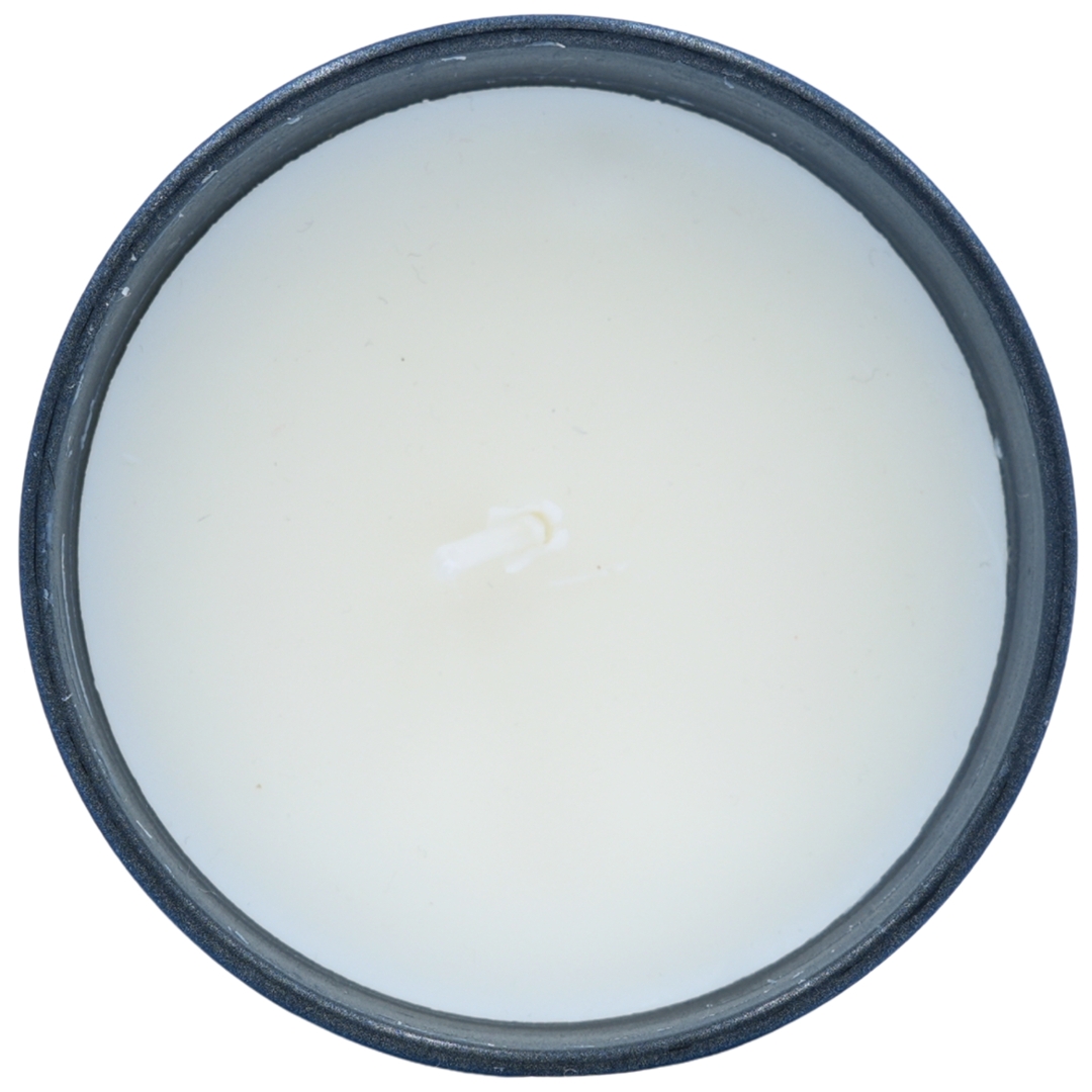 A Patek Philippe scented candle presented in a deep blue frosted glass vessel, showcasing the brand’s elegant aesthetic beyond watchmaking. The exterior is adorned with delicate white motifs inspired by traditional decorative patterns, subtly incorporating elements of the Calatrava cross for discreet brand recognition. The rich blue tone lends a calm, sophisticated presence suitable for both contemporary and classic interiors.