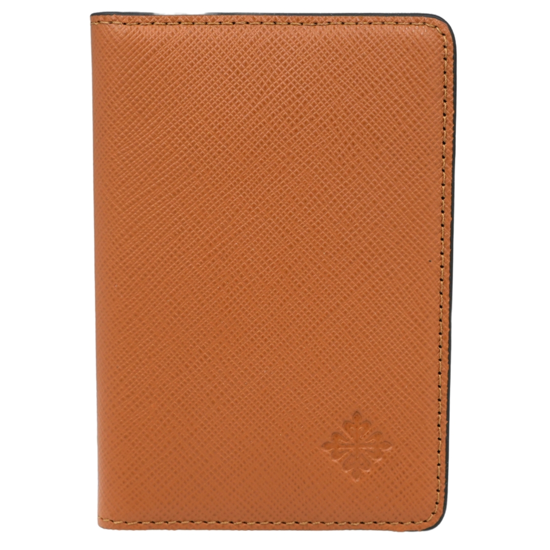 A refined Patek Philippe bi-fold wallet crafted in rich brown textured leather, showcasing the maison’s understated approach to luxury leather goods. The exterior features a clean, structured silhouette with fine stitching and a discreetly embossed Calatrava cross, offering subtle brand recognition without overt display. The warm brown tone and cross-grain finish give the wallet a timeless, versatile look.