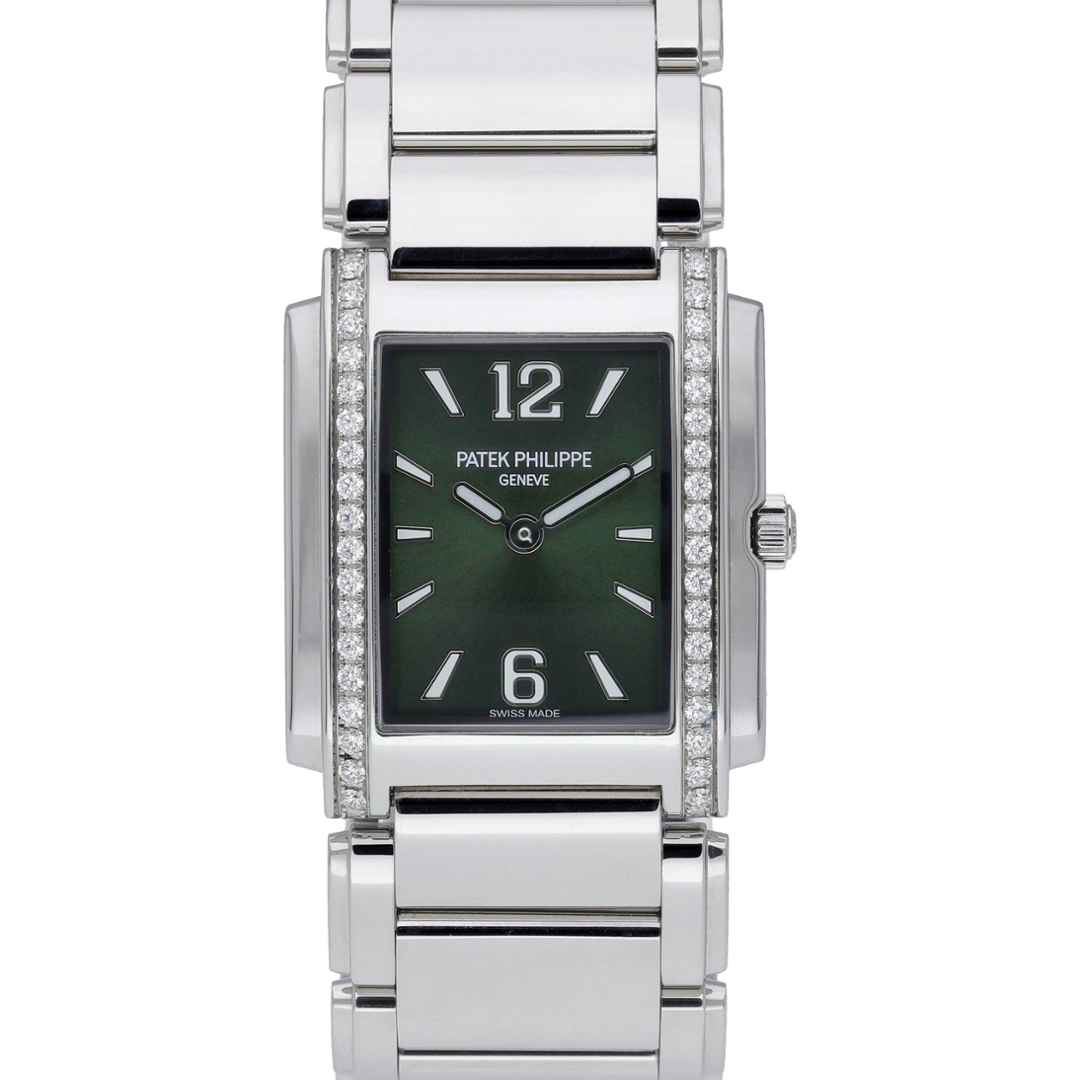 A Patek Philippe Twenty-4 Watch, Stainless Steel with a Diamond Bezel on a Green Dial