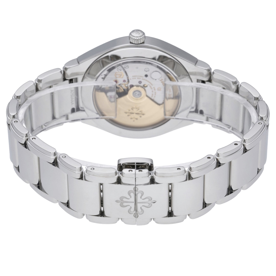 The dial features applied Arabic numerals, luminous hands, and a discreet date aperture at 6 o’clock, maintaining excellent legibility while preserving the watch’s elegant balance. Power is provided by Patek Philippe’s in-house Calibre 324 S C automatic movement, visible through the sapphire caseback and finished to the brand’s exacting standards.