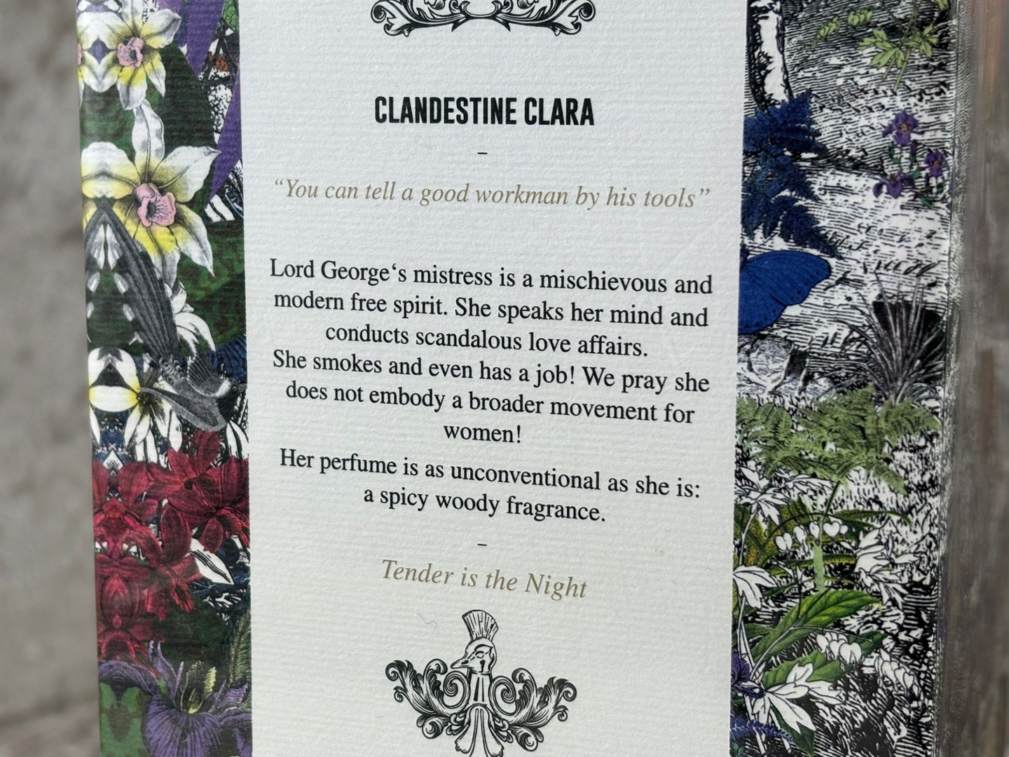A bottle of Penhaligon's Portraits - Clandestine Clara Eau De Parfum in a presentation box.