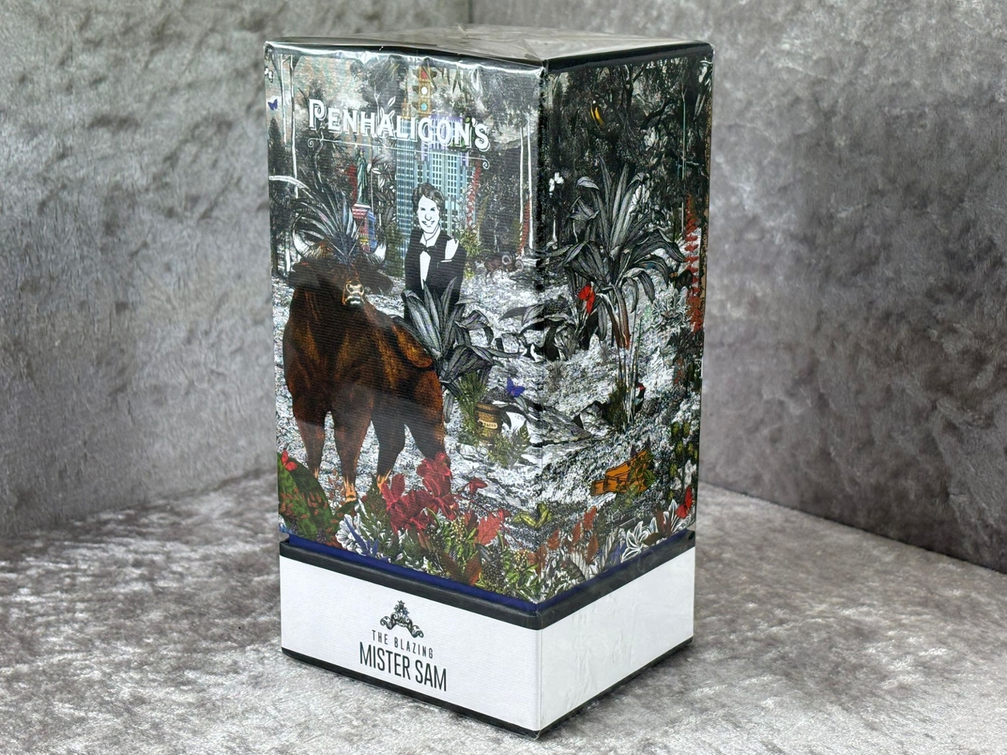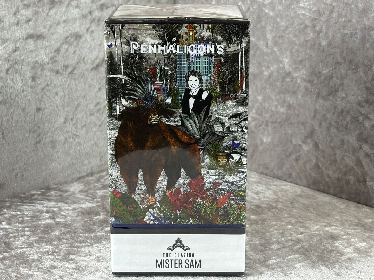 A bottle of Penhaligon's Portraits - The Blazing Mister Sam Eau De Parfum in a presentation box.