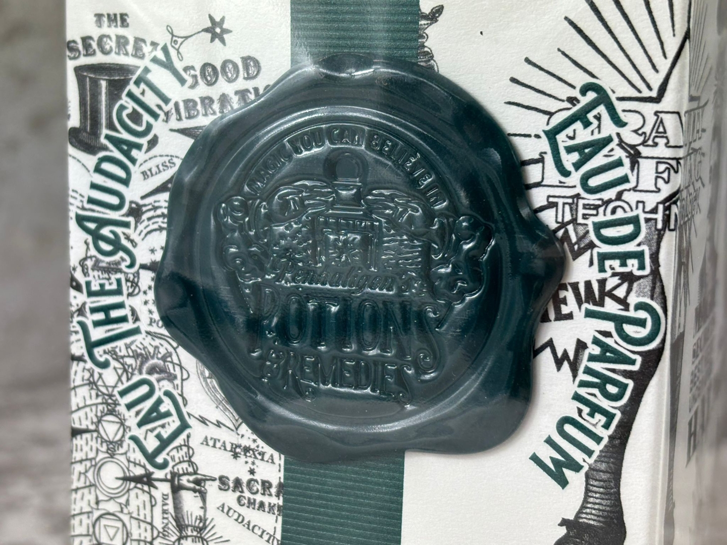 A bottle of Penhaligon's Potions & Remedies Eau The Audacity Eau De Parfum in a presentation box.