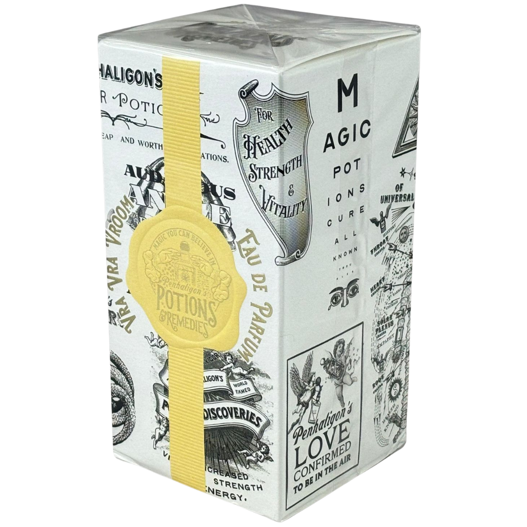 A bottle of Penhaligon's Potions & Remedies Vra Vra Vroom Eau De Parfum in a presentation box.