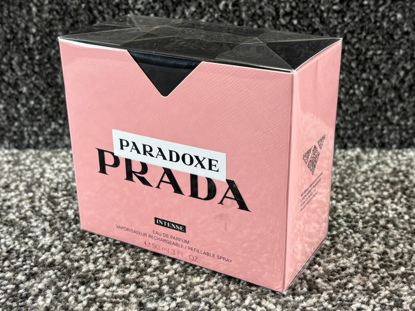 A 90ml bottle of Prada Paradoxe Intense Eau De Parfum, presented in its original presentation box and offering a richer, more powerful evolution of the acclaimed Paradoxe fragrance. This intense interpretation reflects Prada’s modern vision of femininity, balancing elegance with confidence and a contemporary edge.