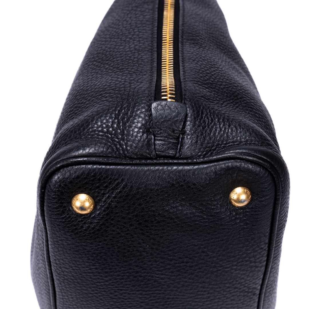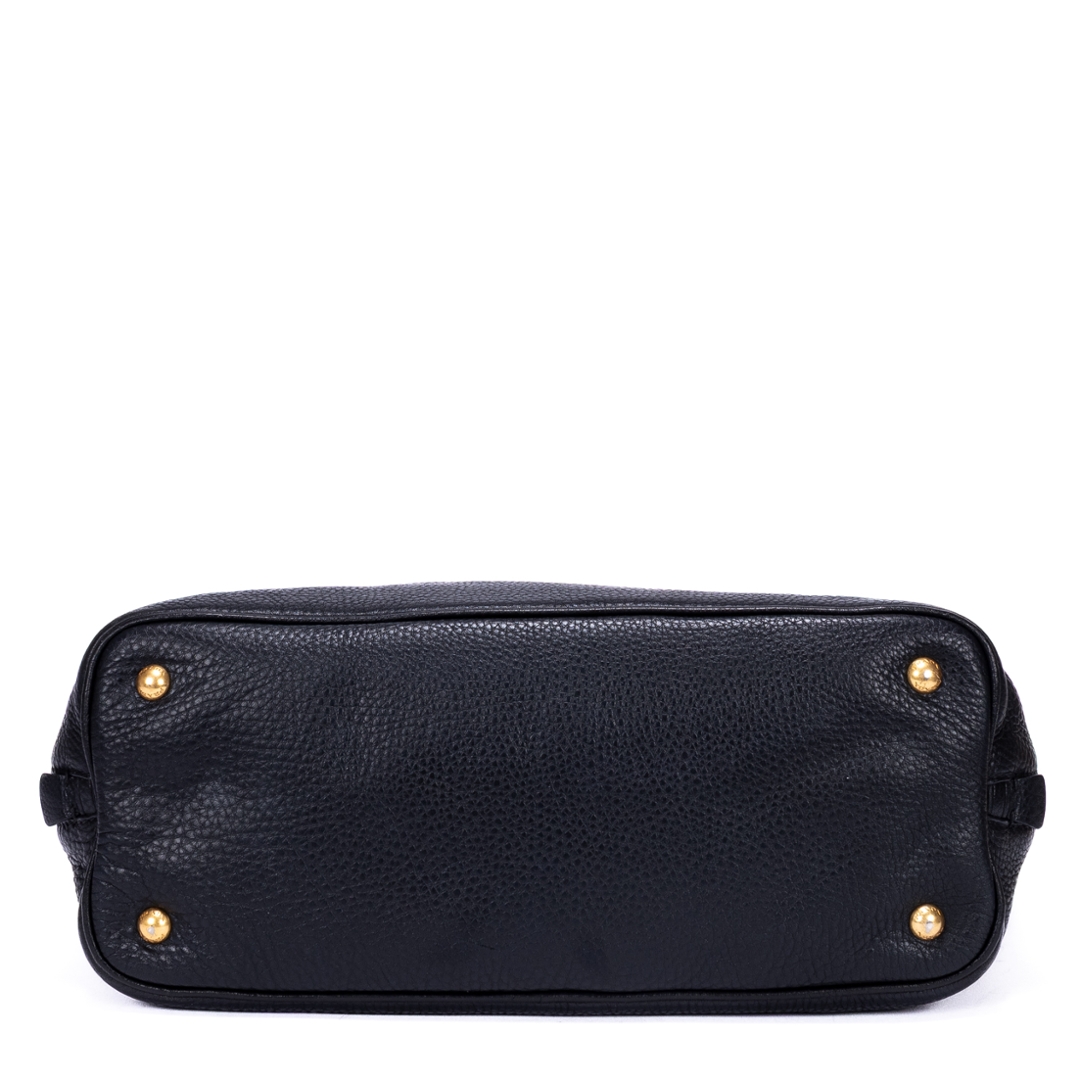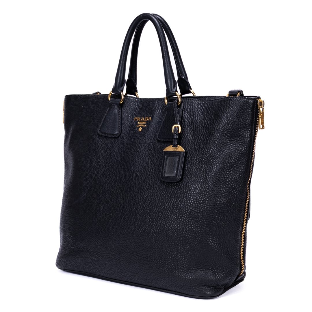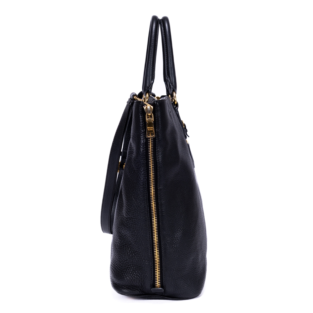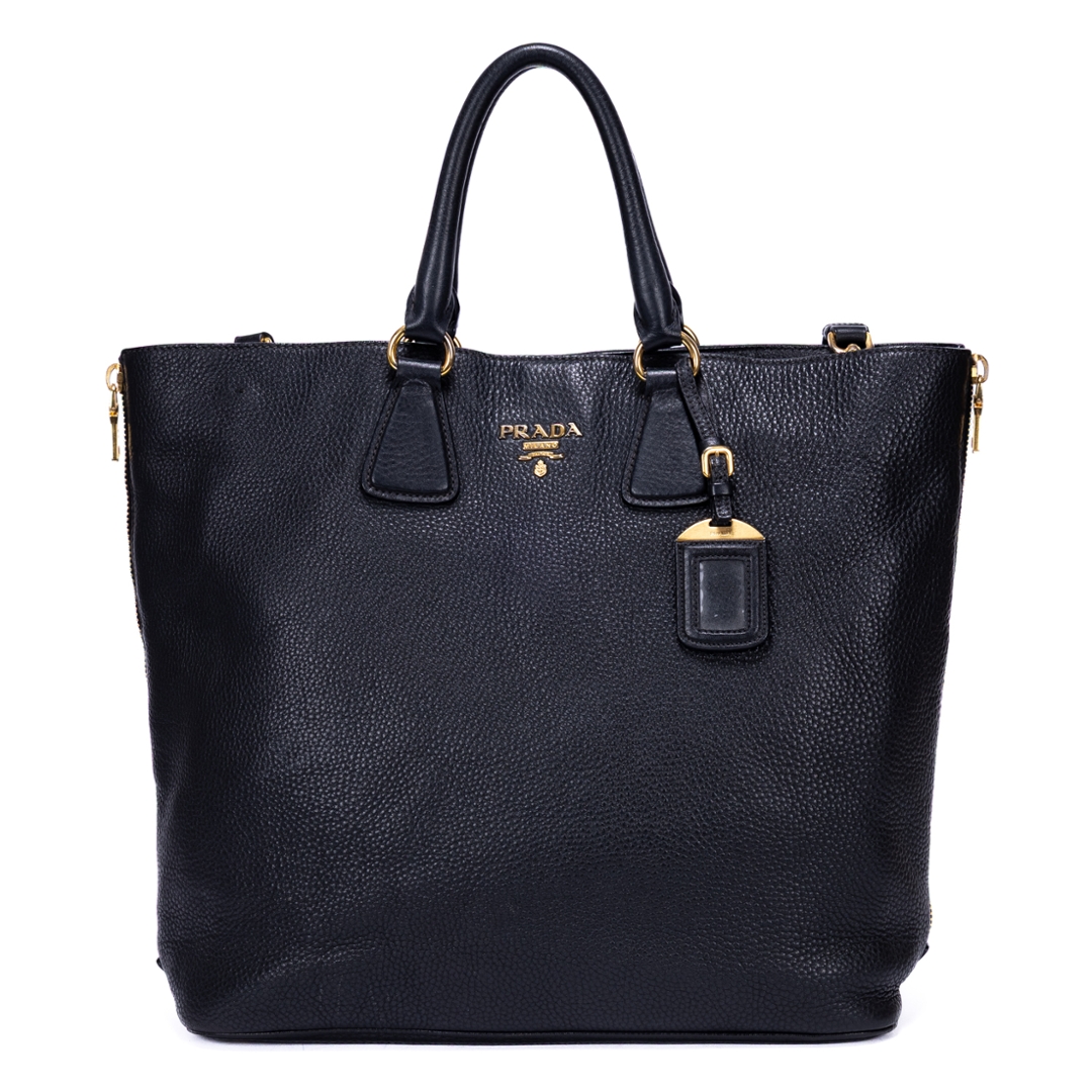 A vintage Prada black calf leather 2-WayTote bag with a certificate of authenticity. Approximately 34cm height, 42cm width.