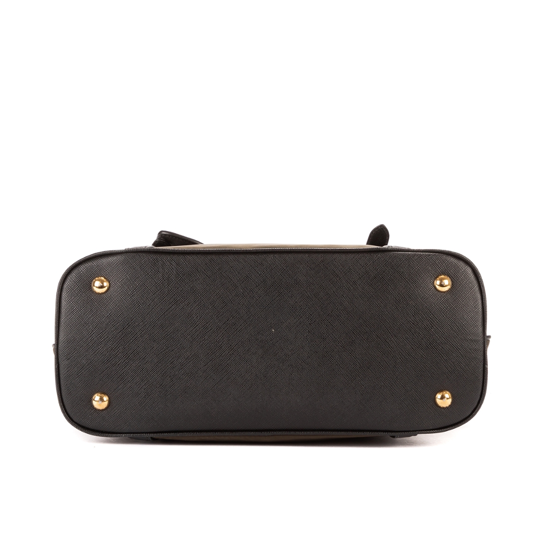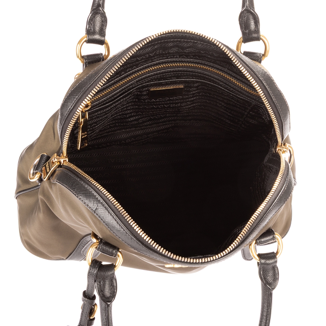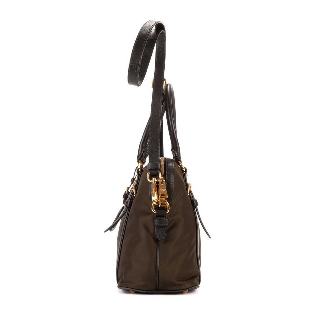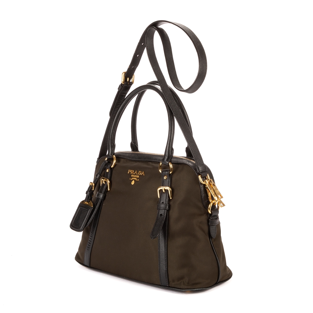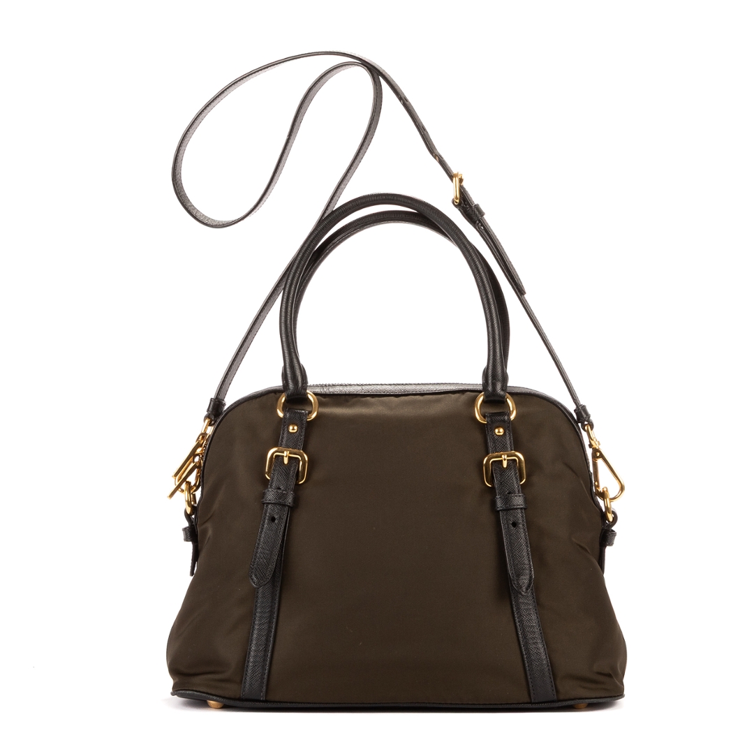 A vintage Prada olive green/black nylon Bauletto bag with a certificate of authenticity. Approximately 24cm height, 33cm width.