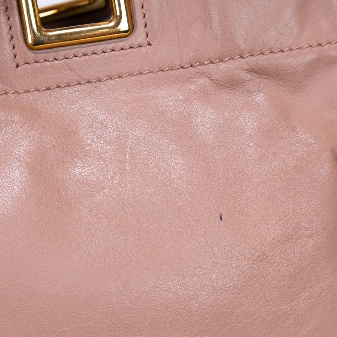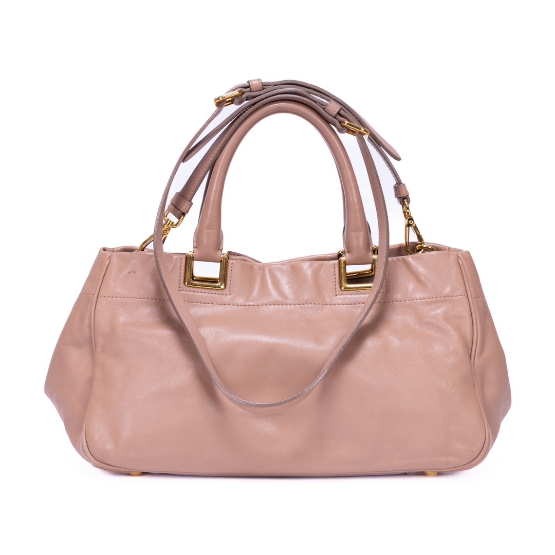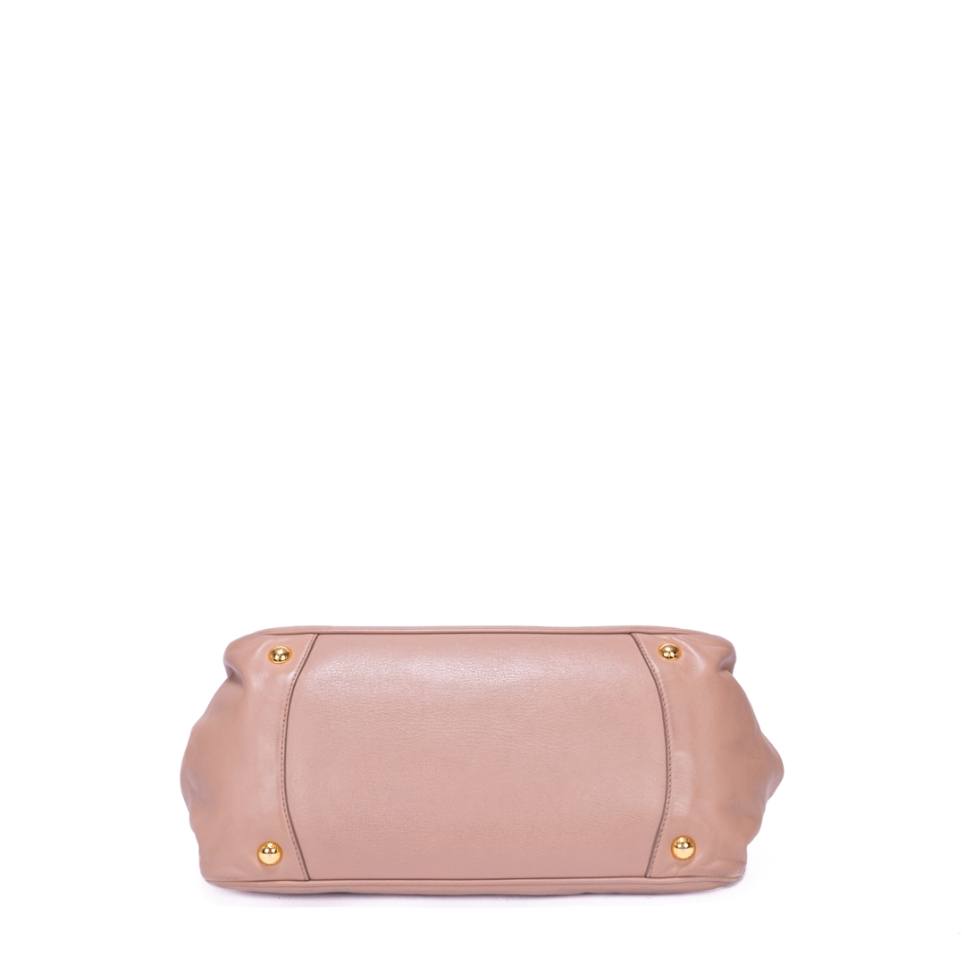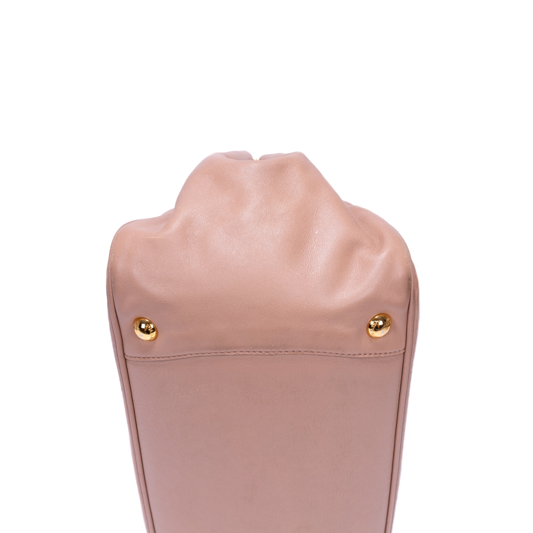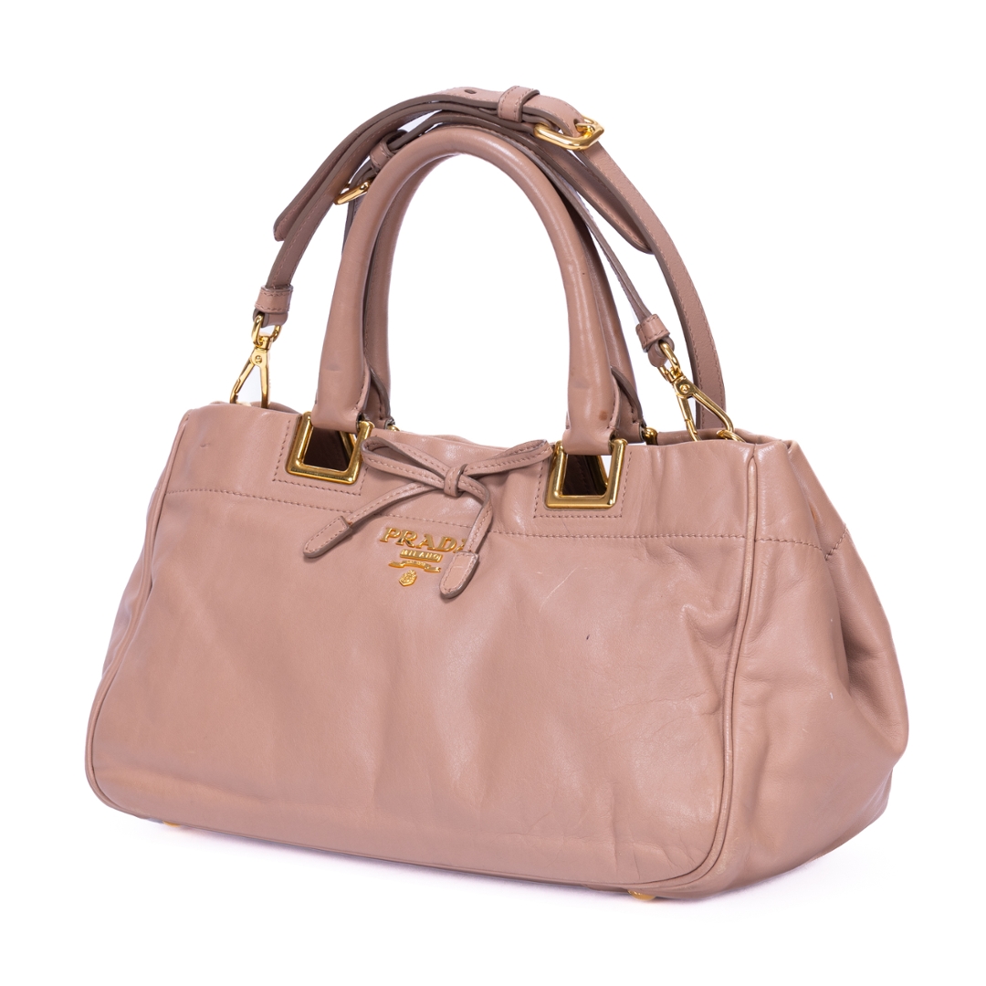 A vintage Prada pink beige calf leather Bow Tote bag with a certificate of authenticity. Approximately 18cm height, 30cm width.