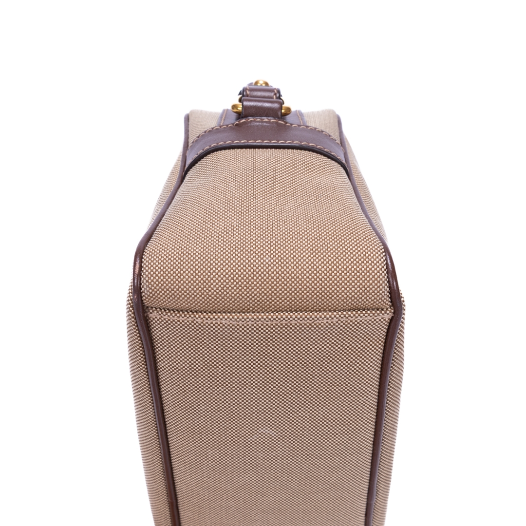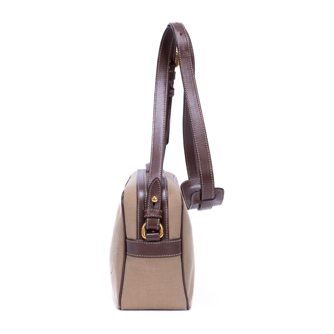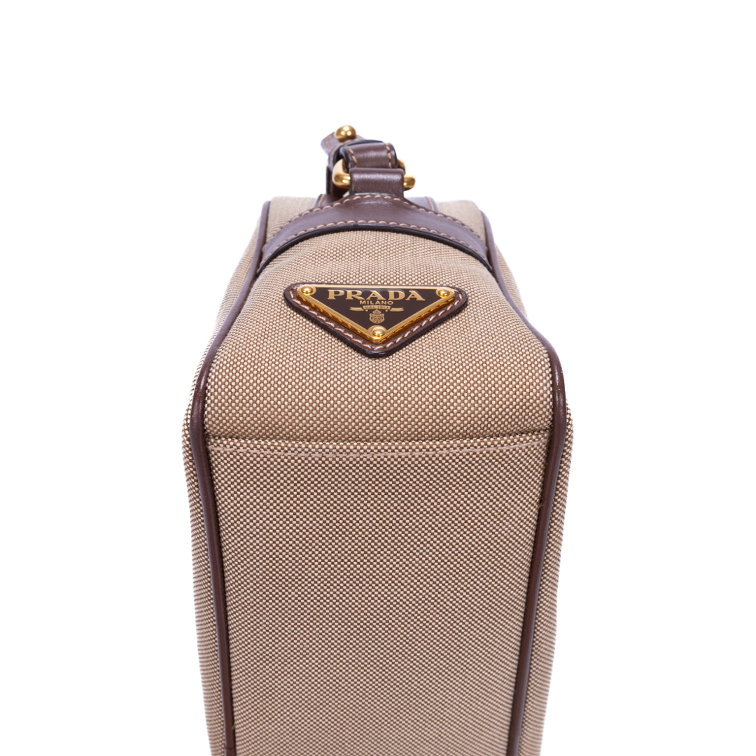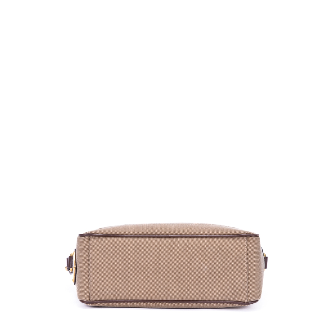 A vintage Prada beige/brown calf leather Camera Bag with a certificate of authenticity. Approximately 15cm height, 23cm width.