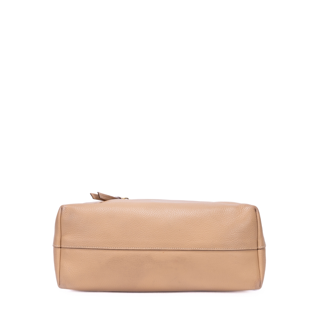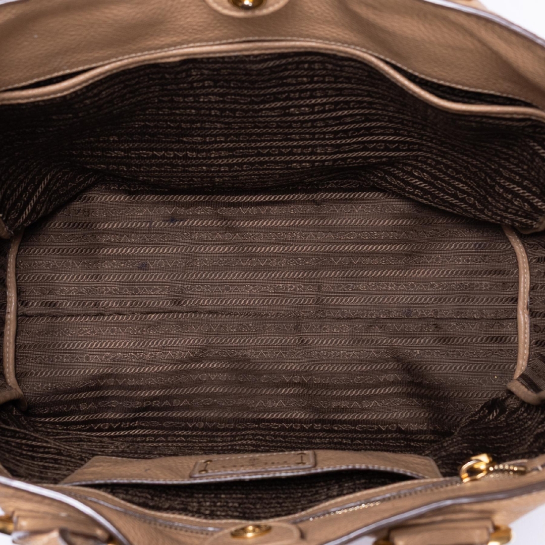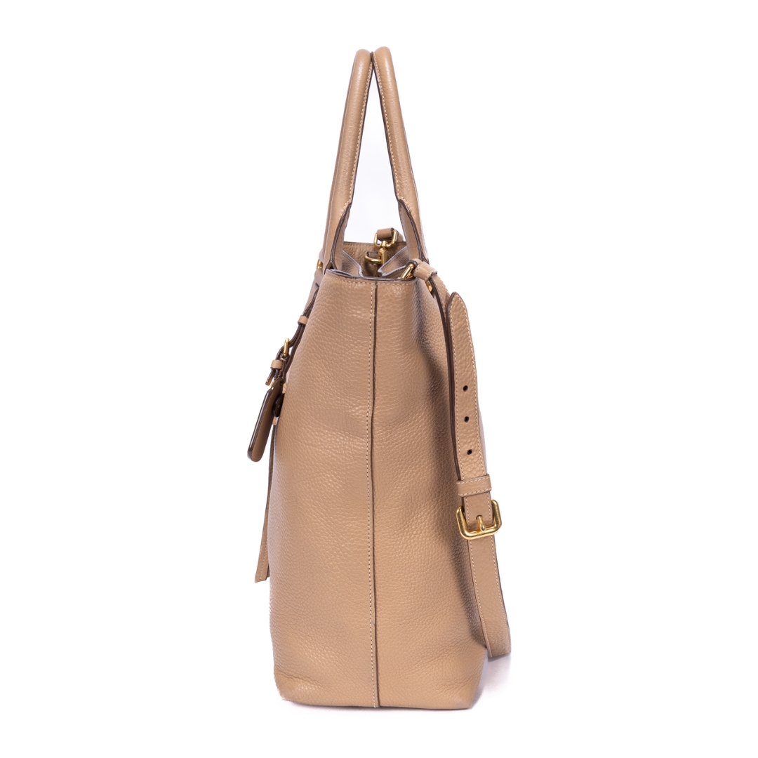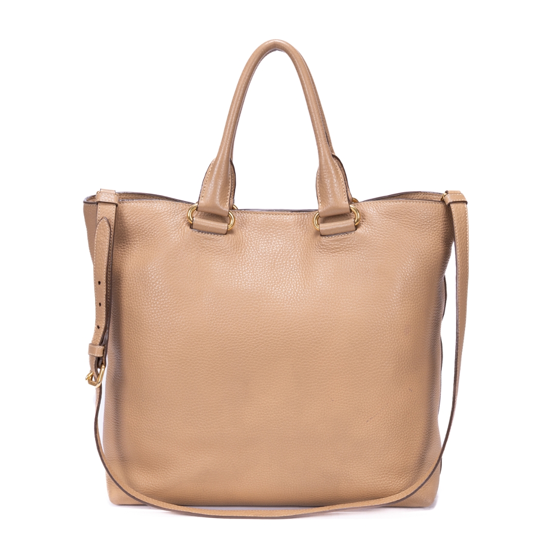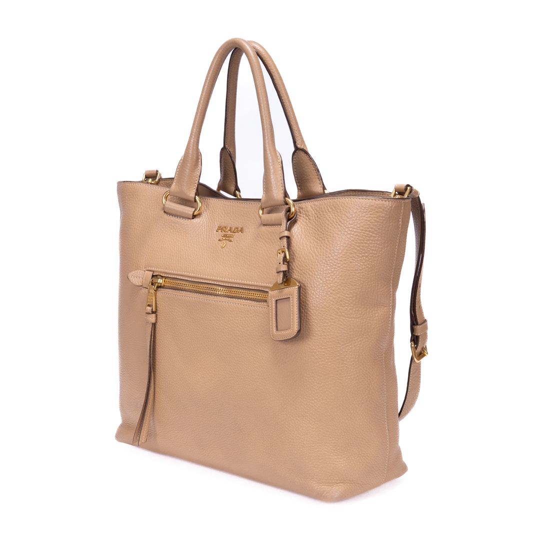 A vintage Prada beige calf leather Front Zip Pocket Tote bag with a certificate of authenticity. Approximately 32cm height, 35cm width.