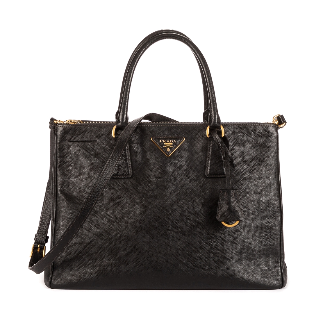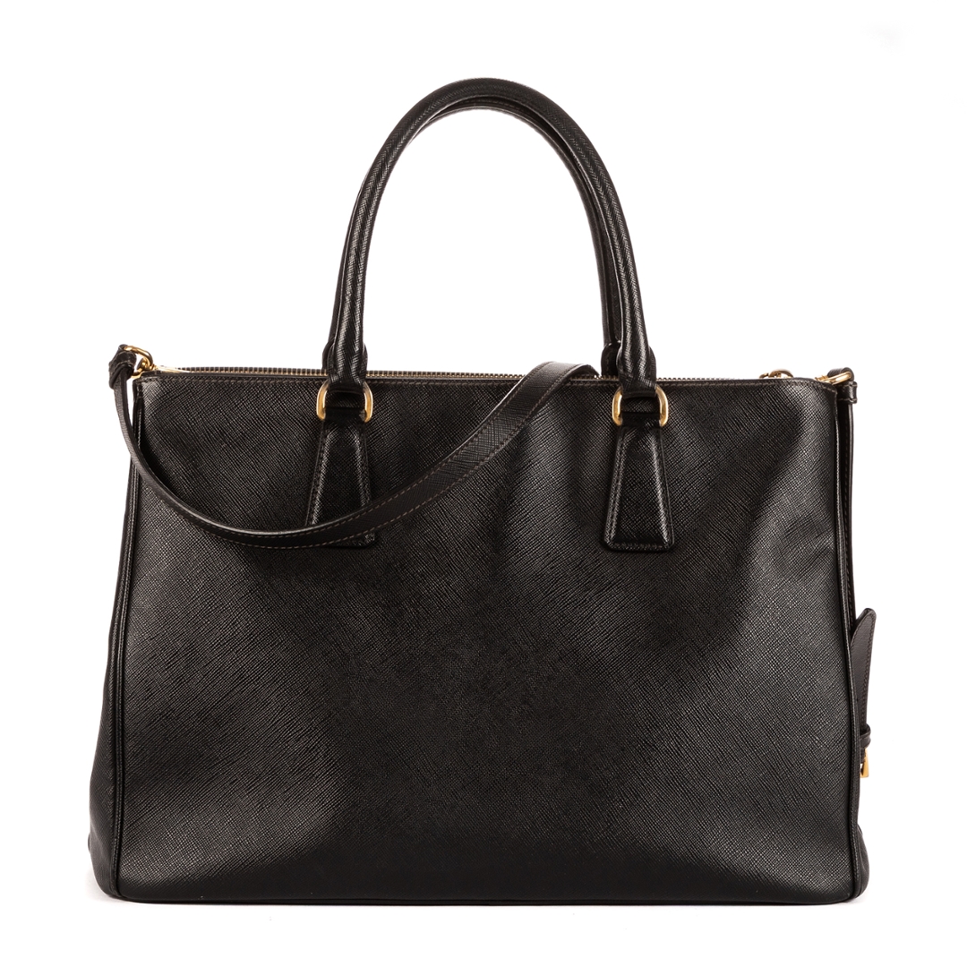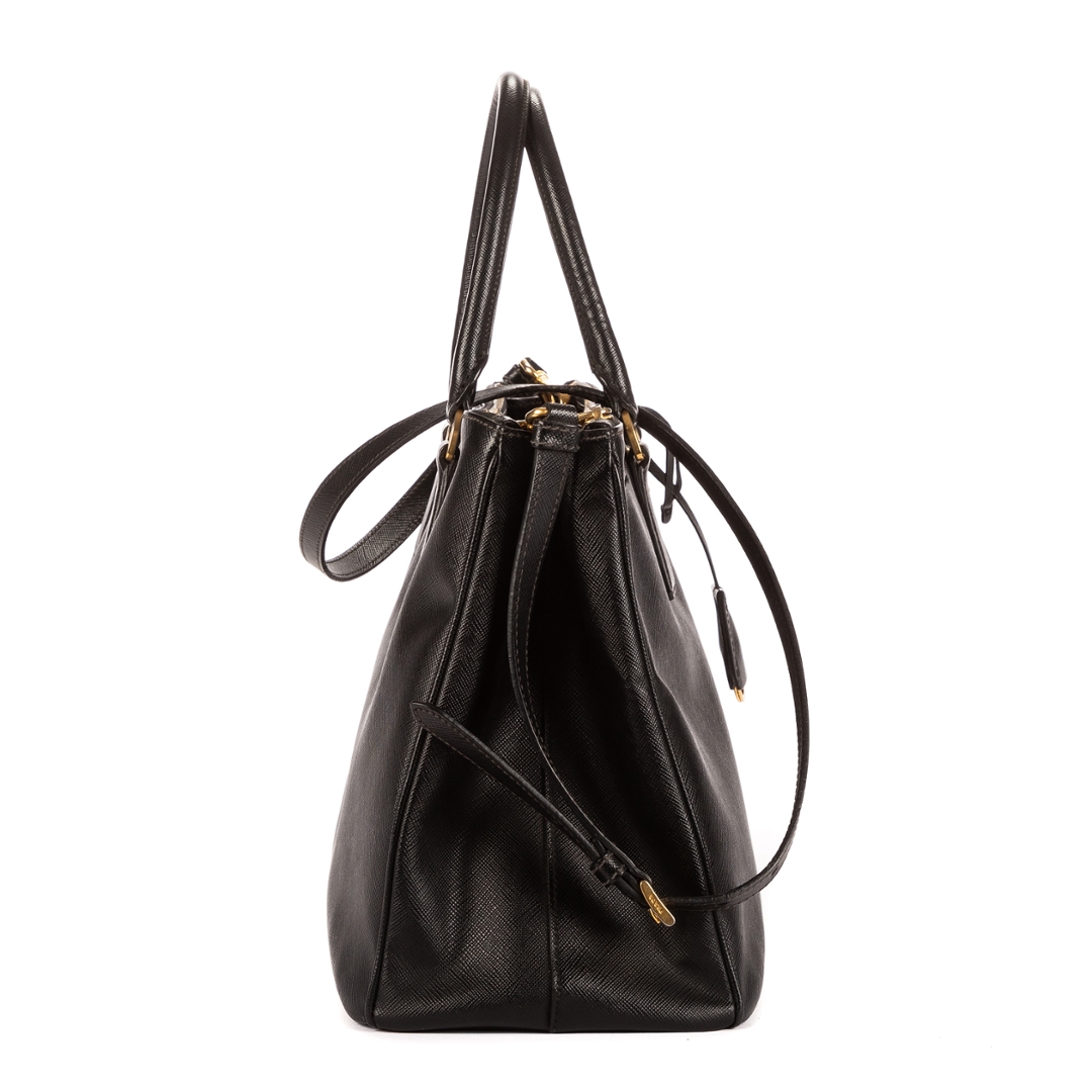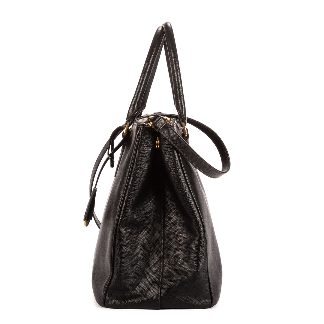 A vintage Prada black calf leather Galleria bag with a certificate of authenticity, Approximately 25cm height, 35cm width.
