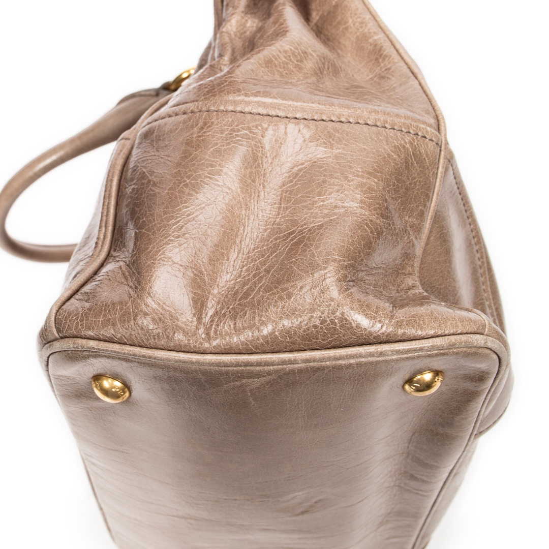 A vintage Prada brown calf leather Horizontal Shopping Tote bag with a certificate of authenticity. Approximately 25cm height, 35cm width.