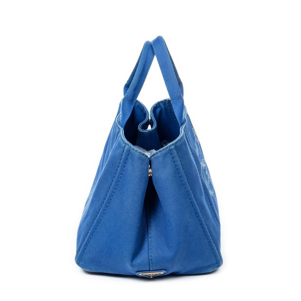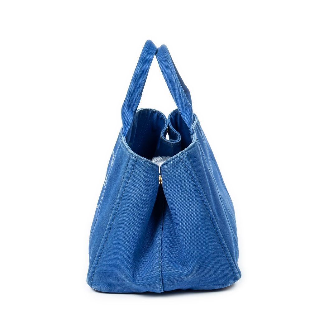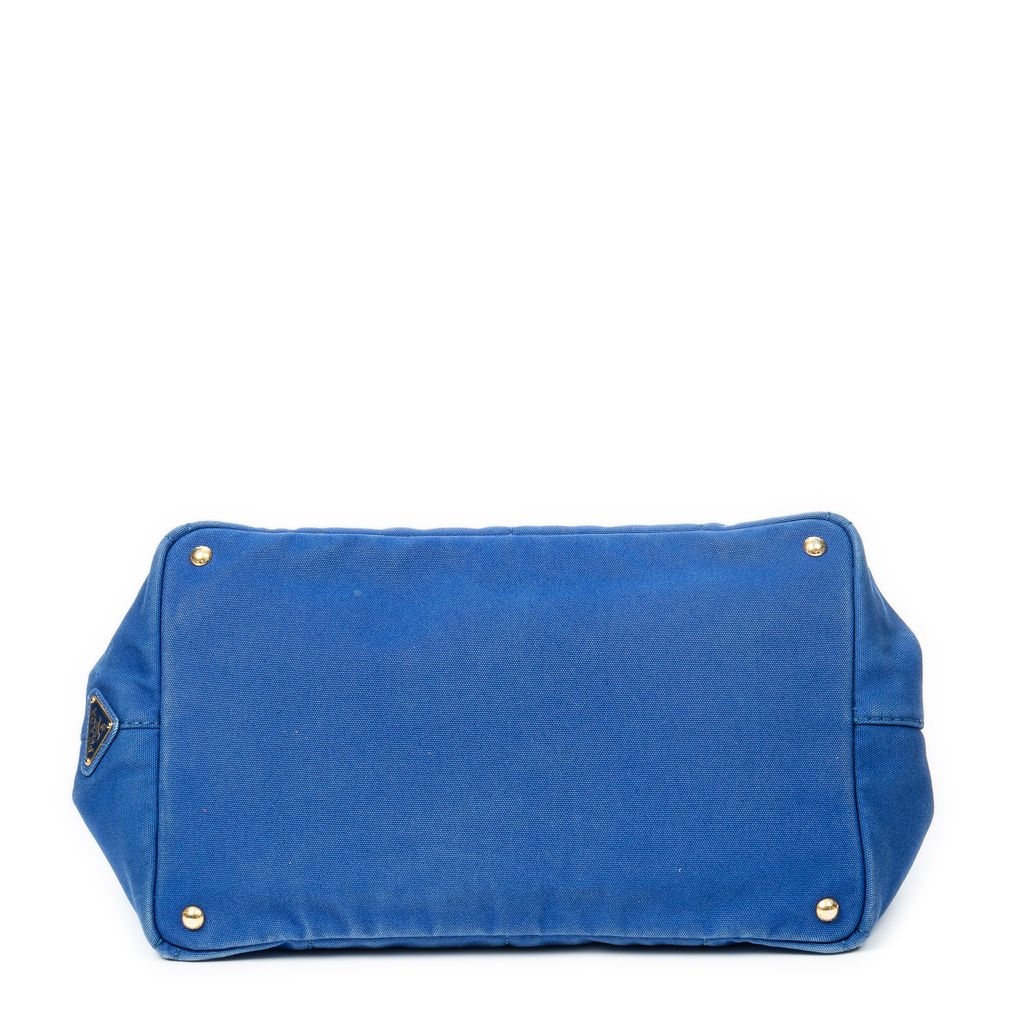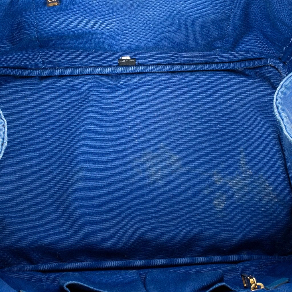 A vintage Prada royal blue canvas Large Canapa Tote bag with a certificate of authenticity, Approximately 24cm height, 40cm width.