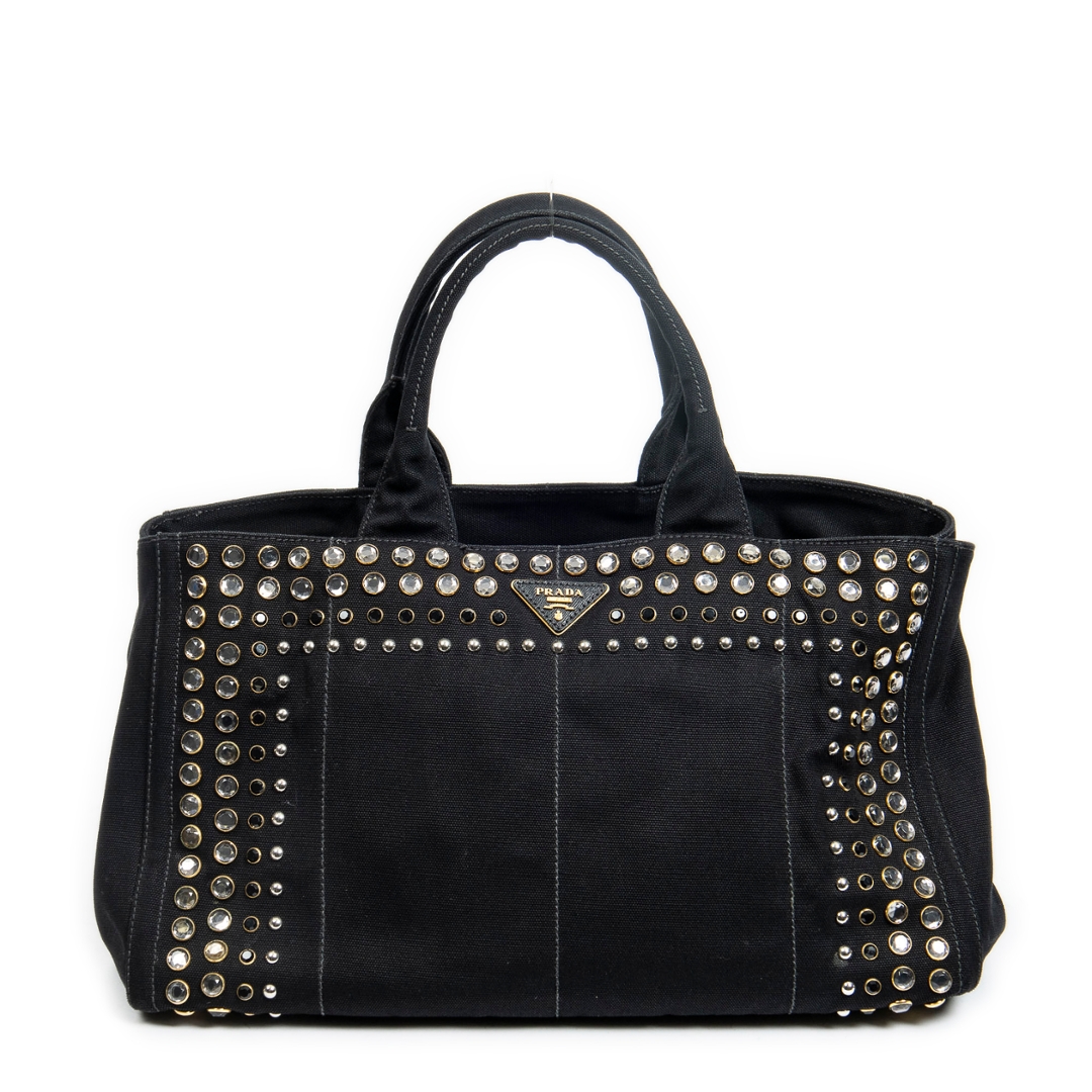 - > Prada Large Rhinestone Canapa Tote (ABA1795RCO).