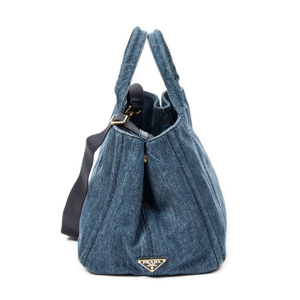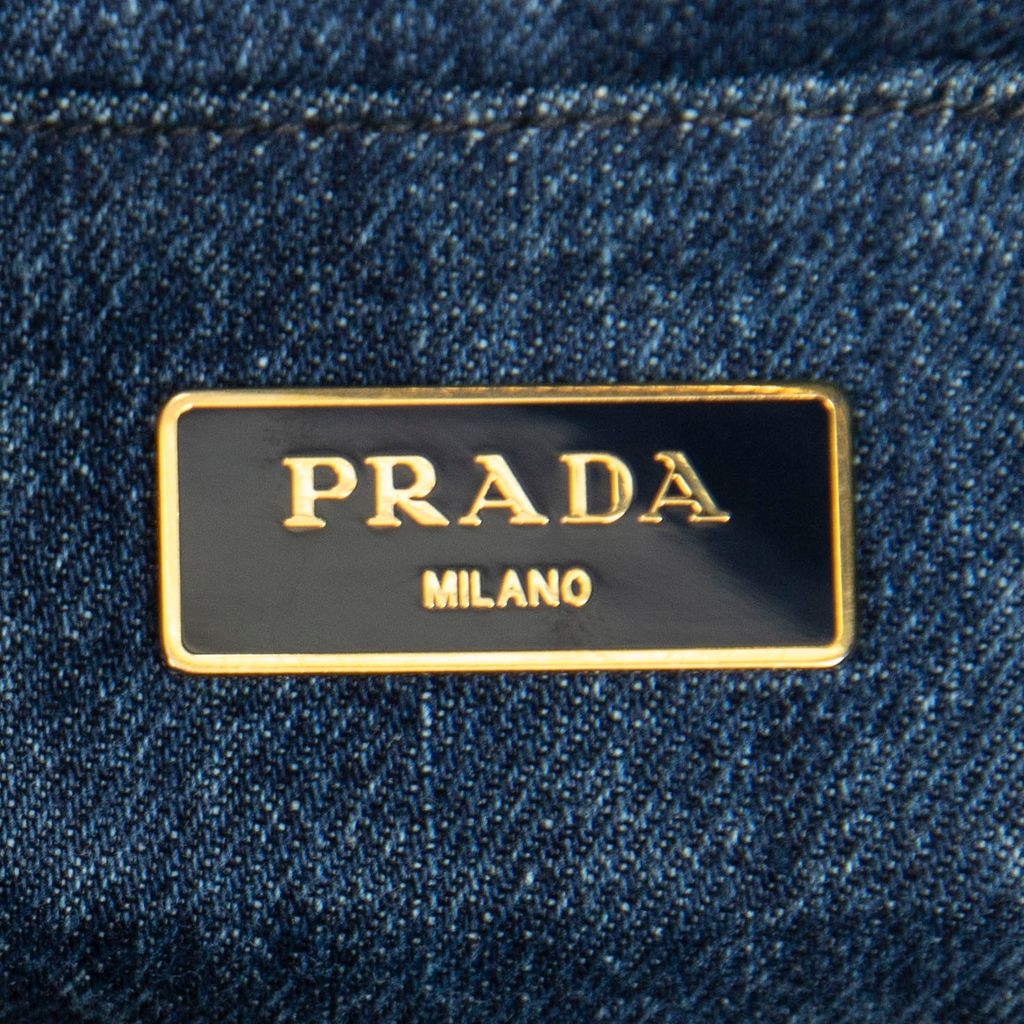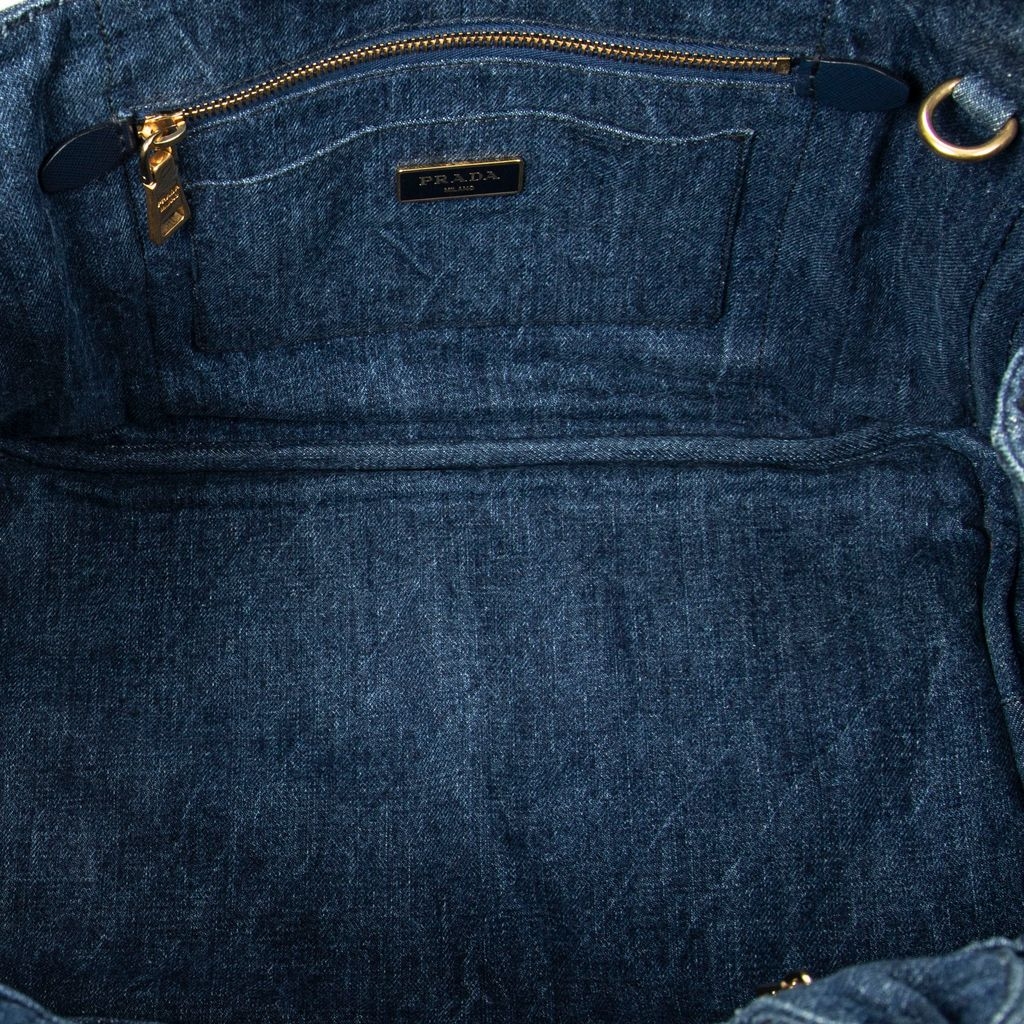 A vintage Prada blue denim canvas Medium Canapa Tote bag with a certificate of authenticity, Approximately 22cm height, 34cm width.