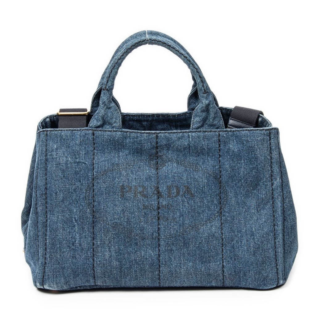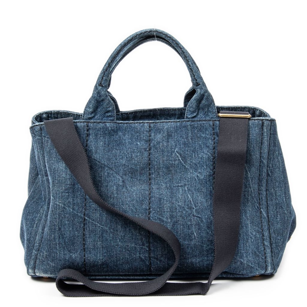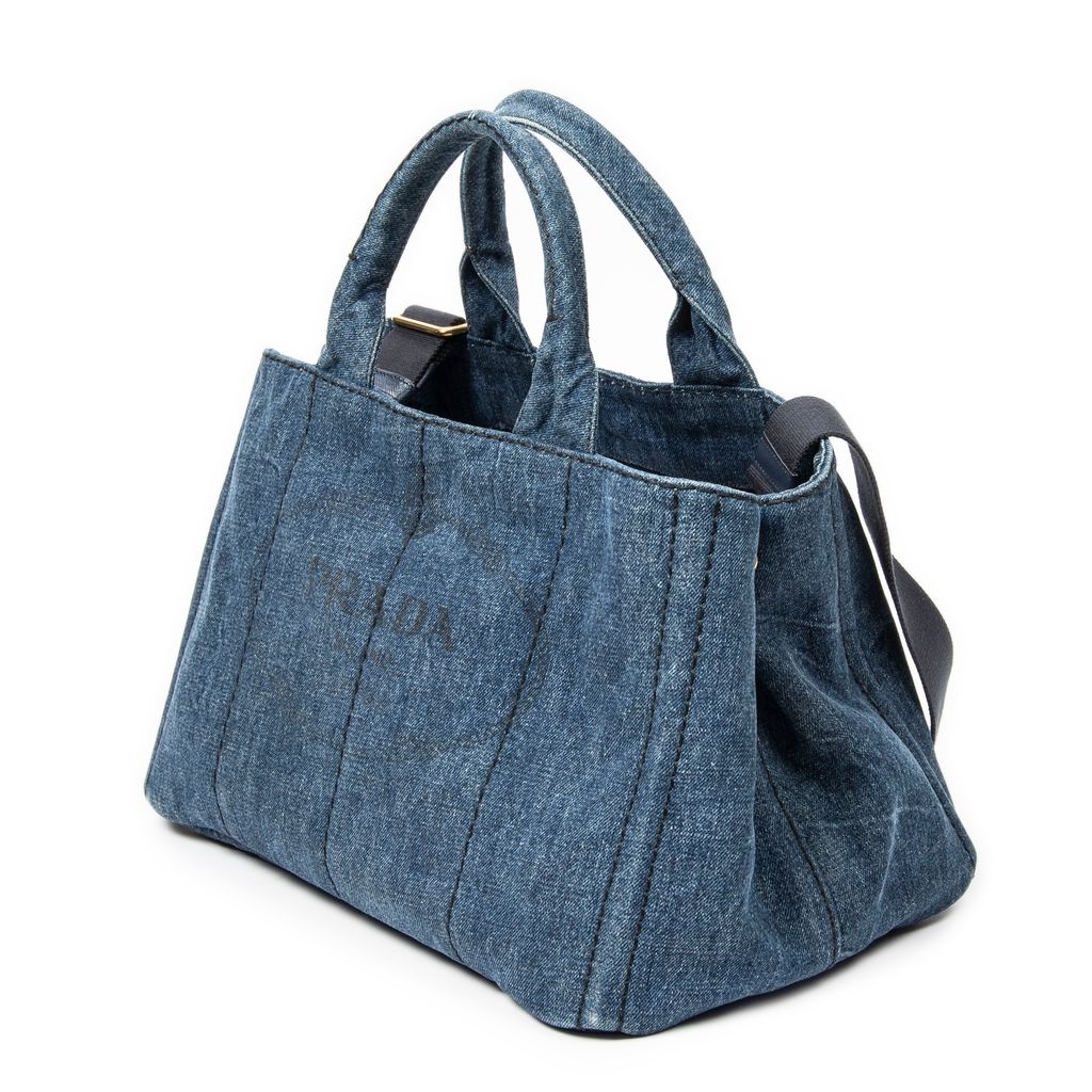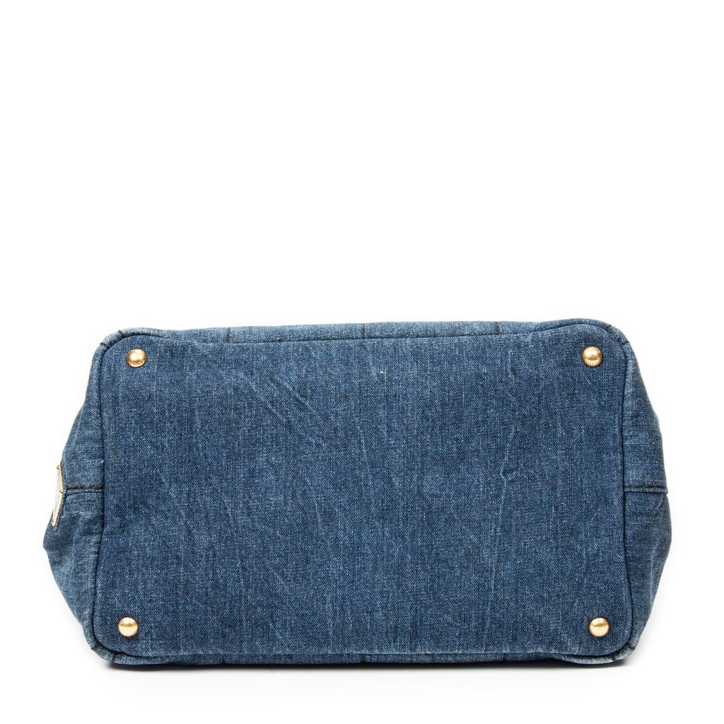 A vintage Prada blue denim canvas Medium Canapa Tote bag with a certificate of authenticity, Approximately 22cm height, 34cm width.