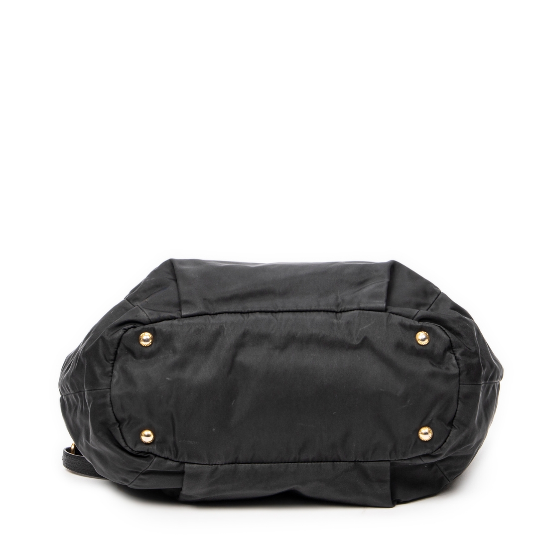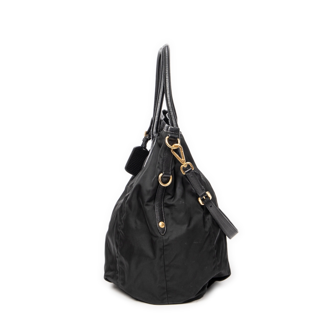 A vintage Prada black canvas Medium Shopping Tote bag with a certificate of authenticity. Approximately 38cm height, 32cm width.