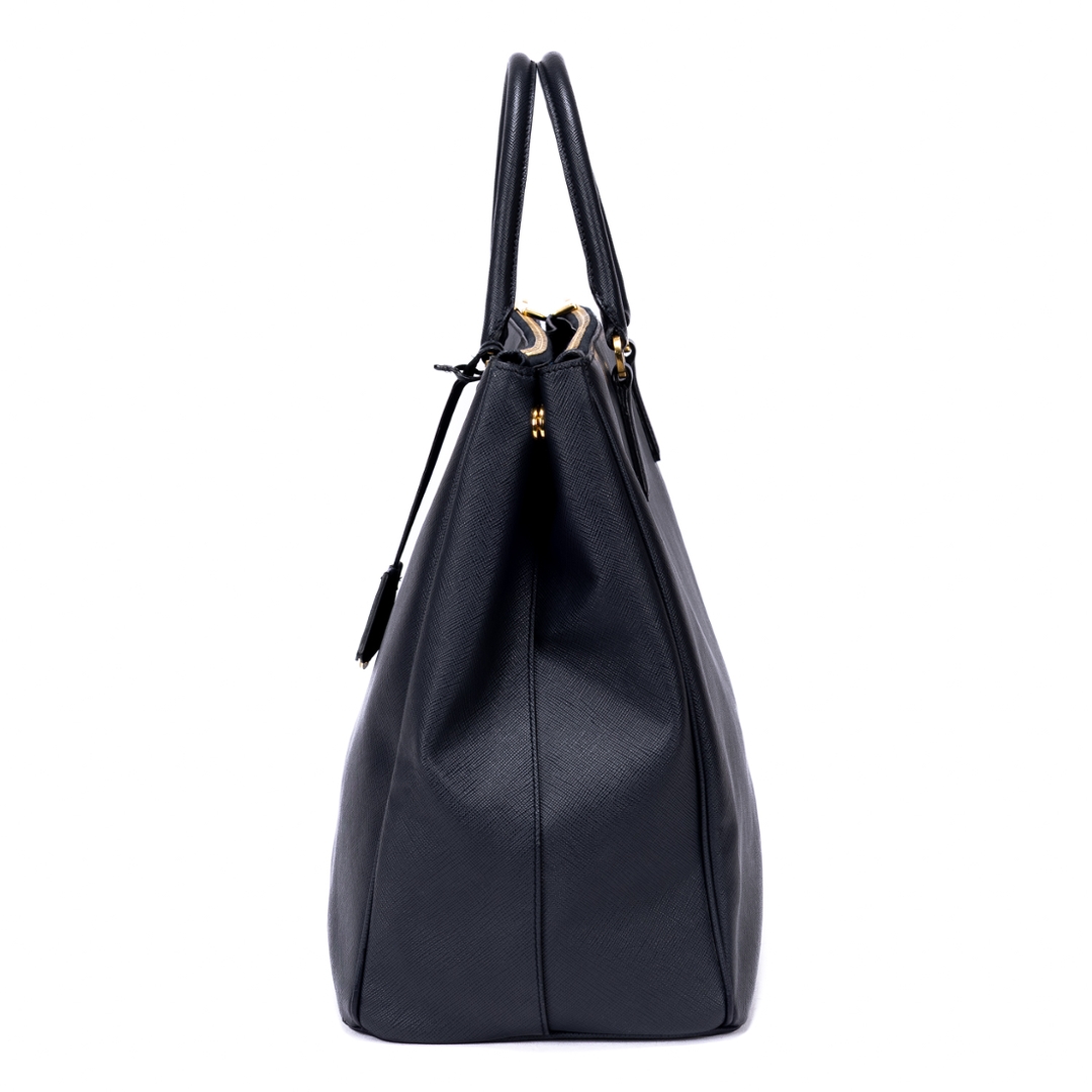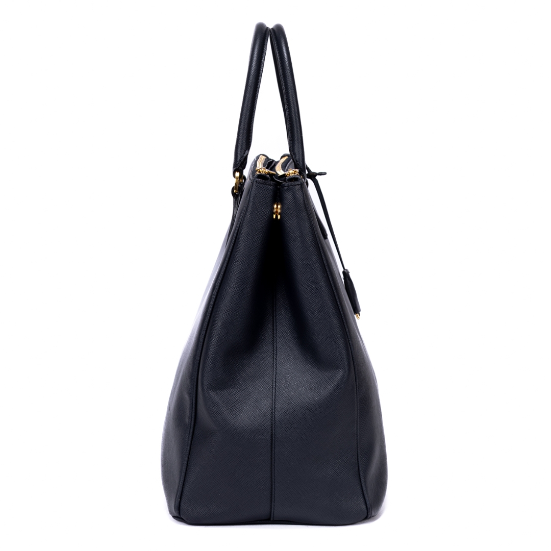 A vintage Prada navy calf leather Saffiano Lux Double Zip Large Tote bag with a certificate of authenticity. Approximately 29cm height, 40cm width.