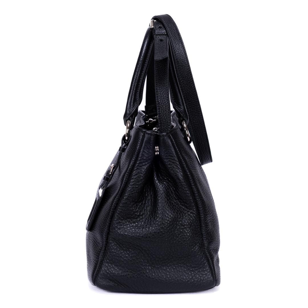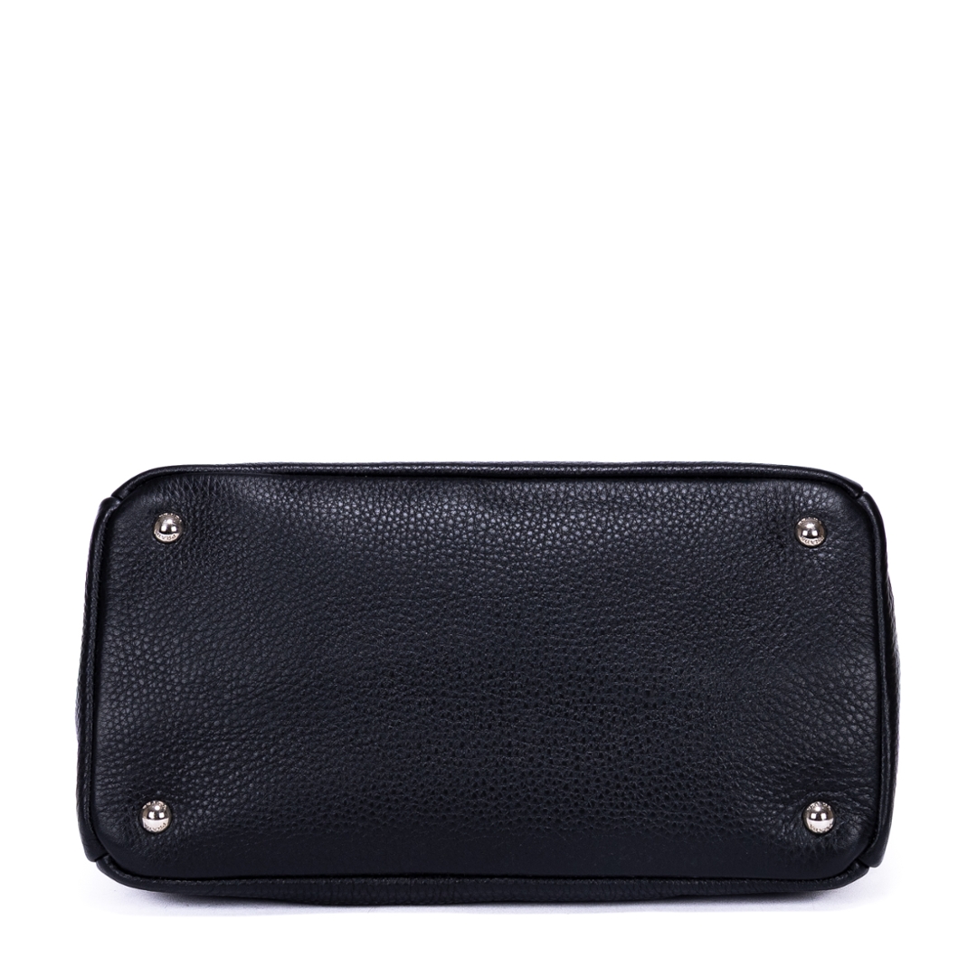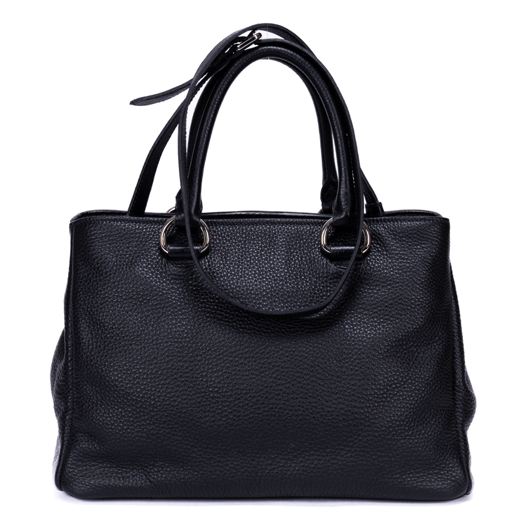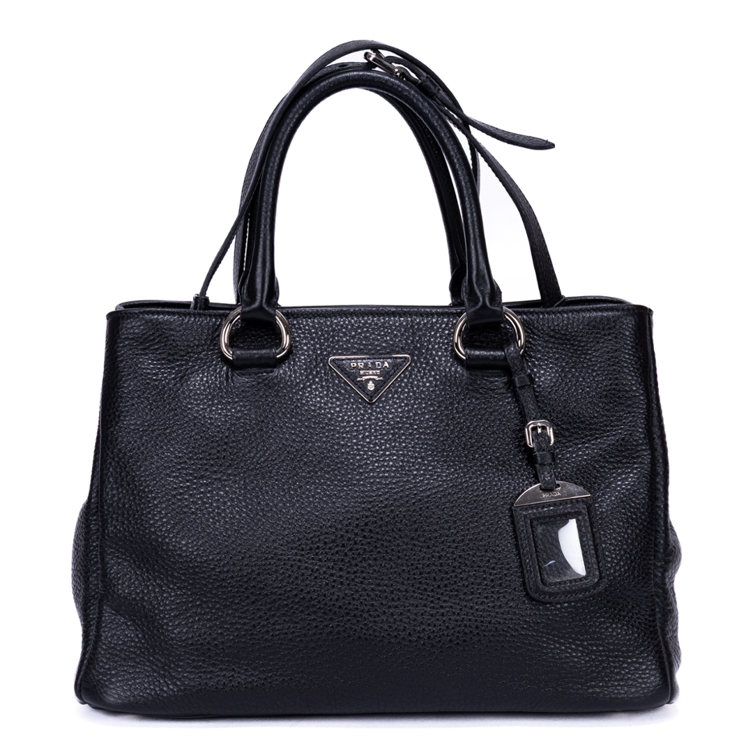 A vintage Prada black calf leather Shopping Tote bag with a certificate of authenticity. Approximately 25cm height, 34cm width.