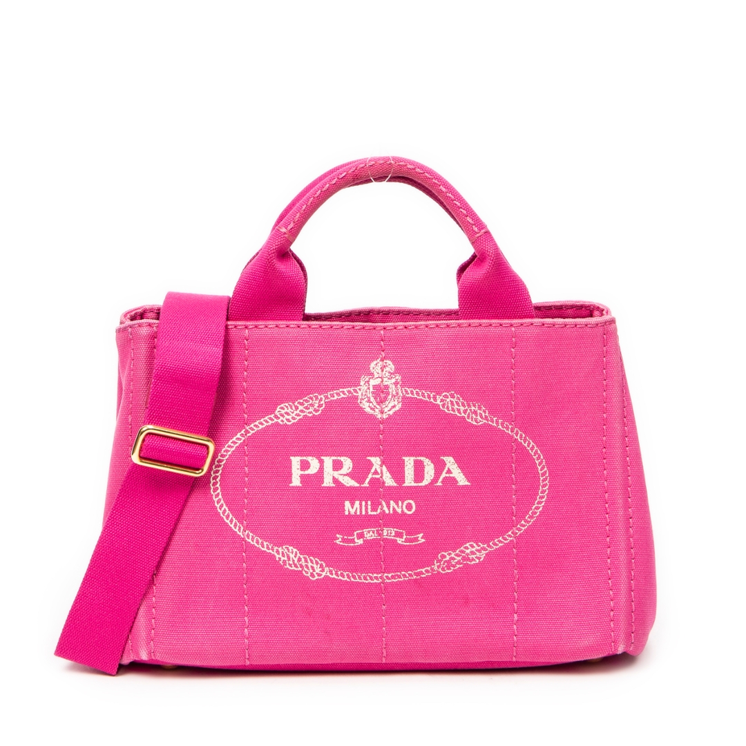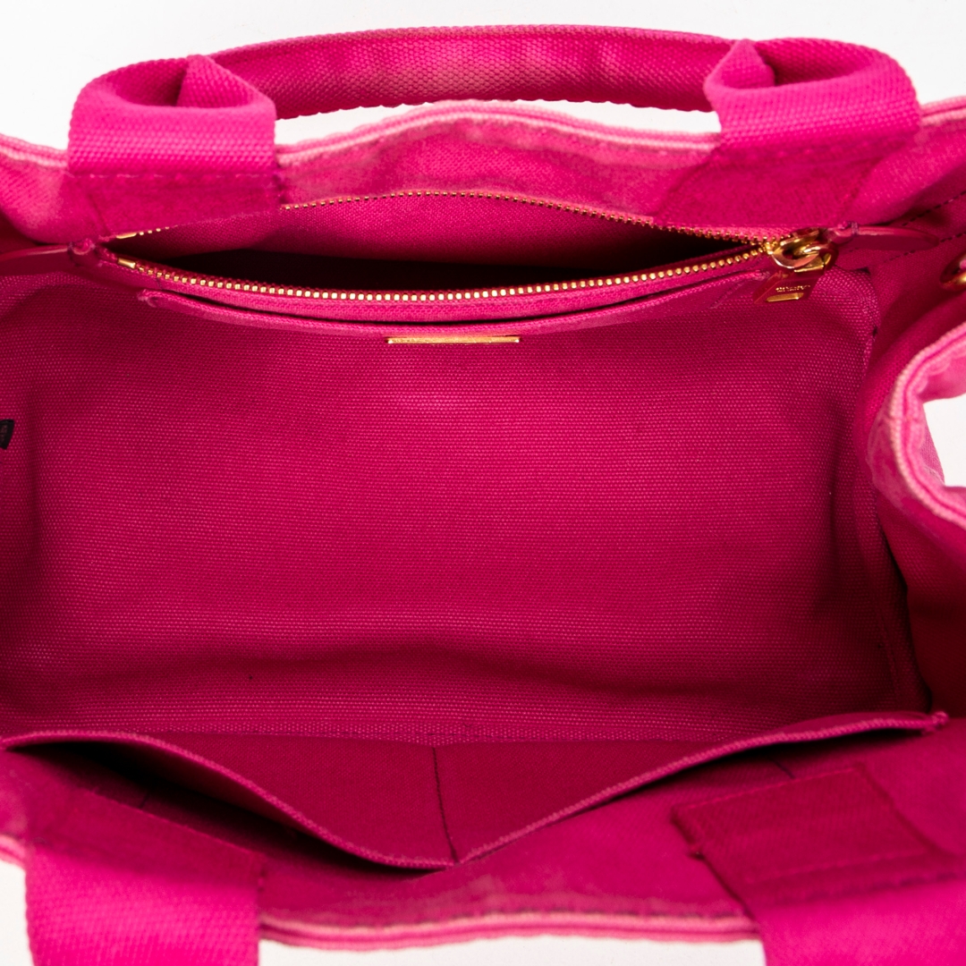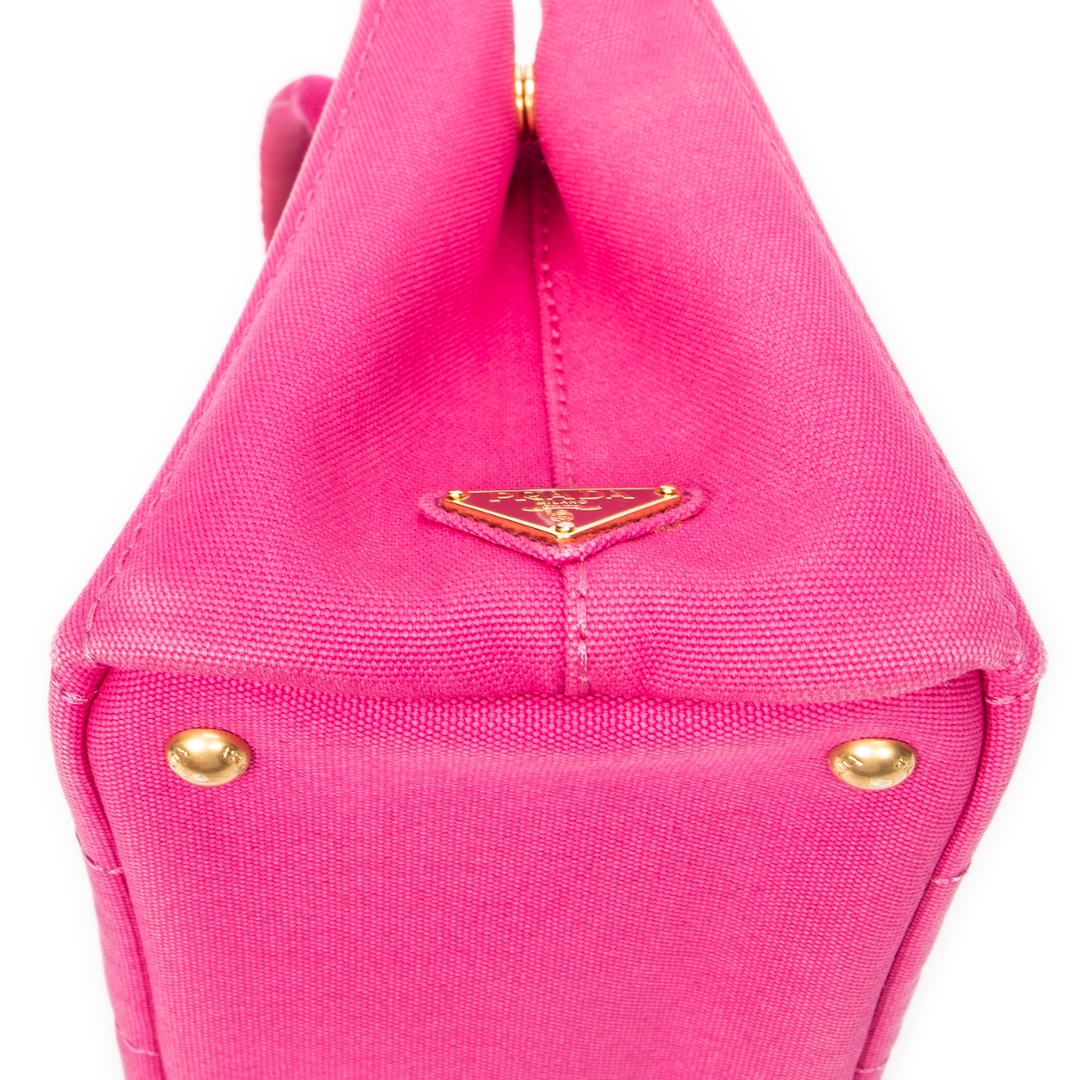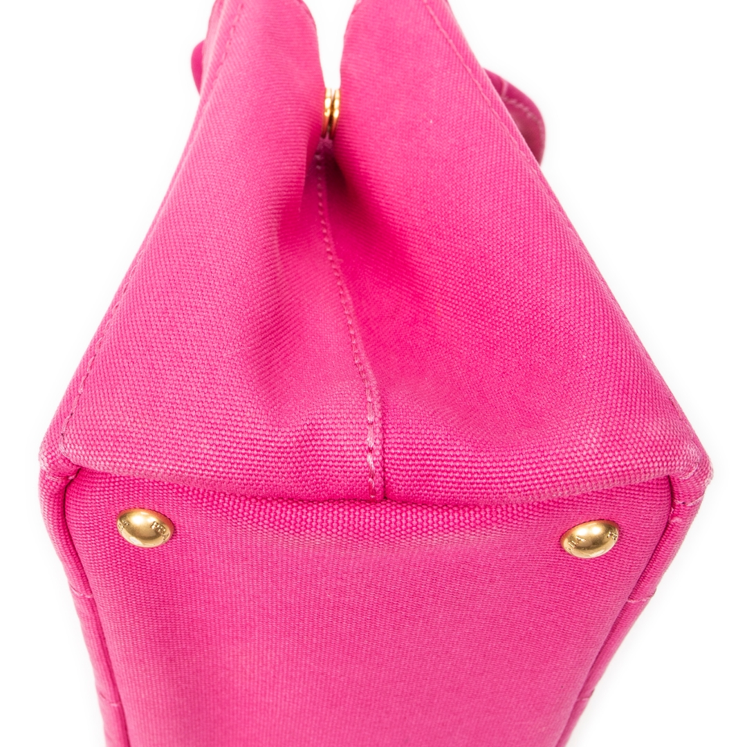 A vintage Prada fuchsia pink canvas Small Canapa Tote bag with a certificate of authenticity, Approximately 18cm height, 28cm width.
