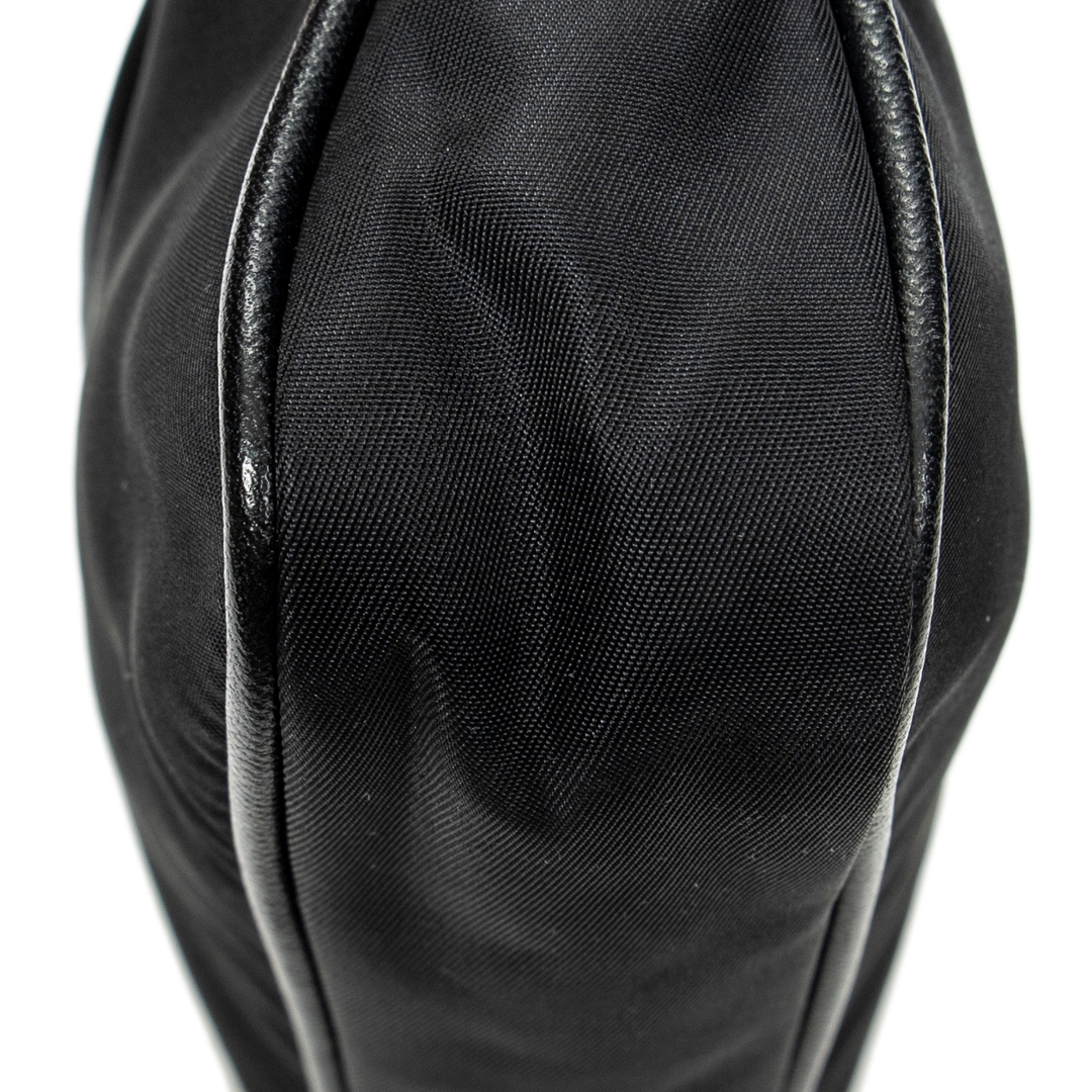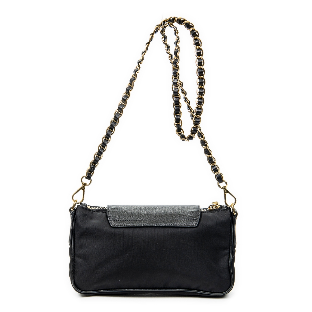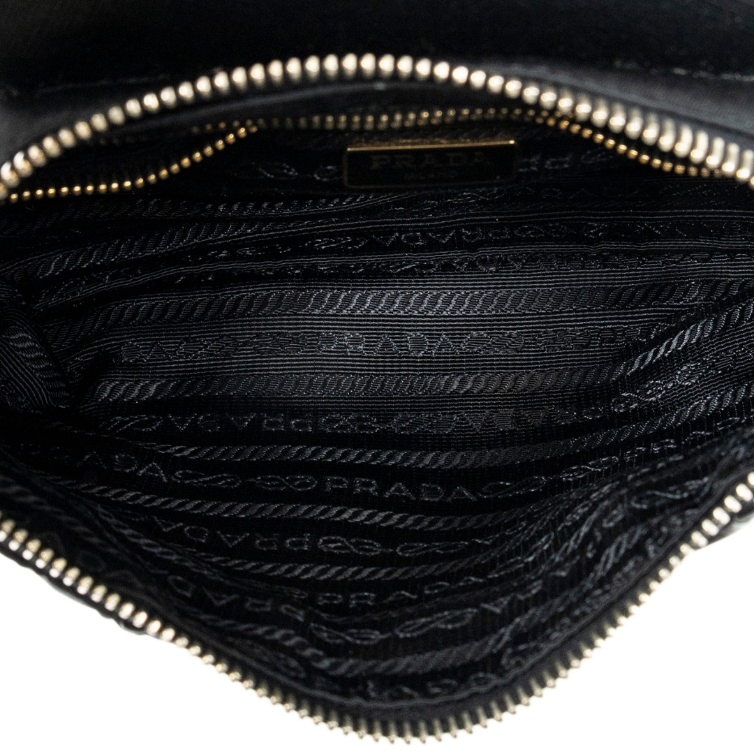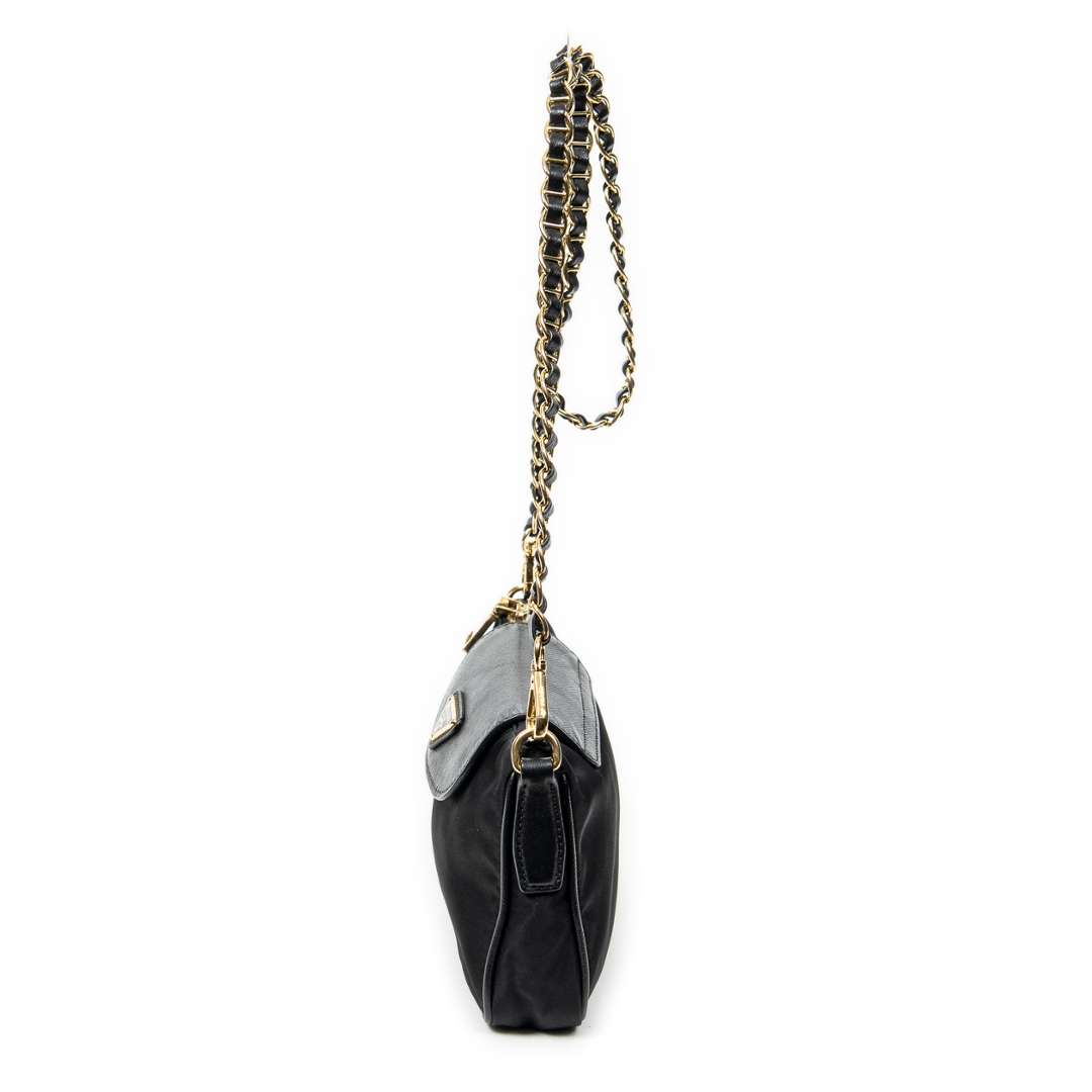 A vintage Prada black canvas Small Zip Chain Crossbody bag with a certificate of authenticity. Approximately 12cm height, 22cm width.