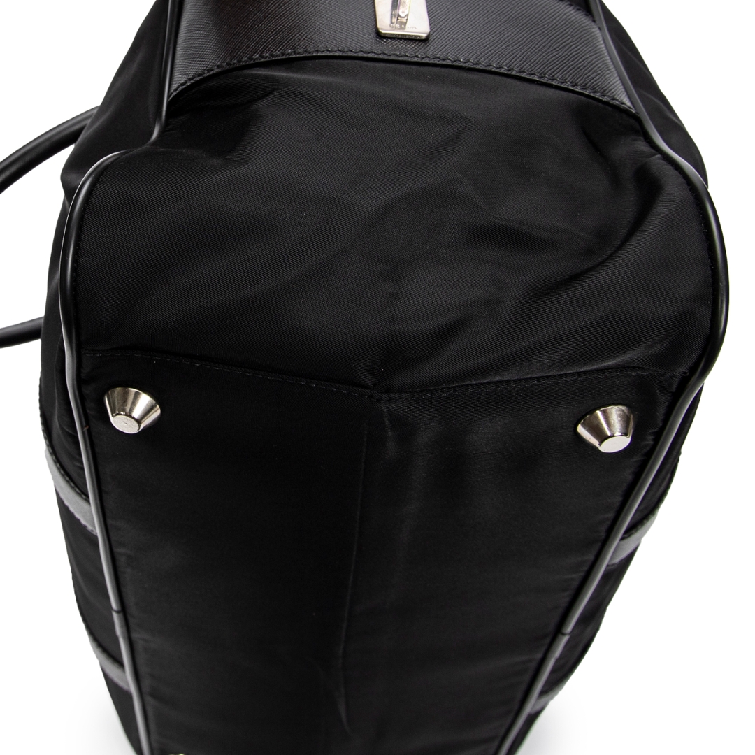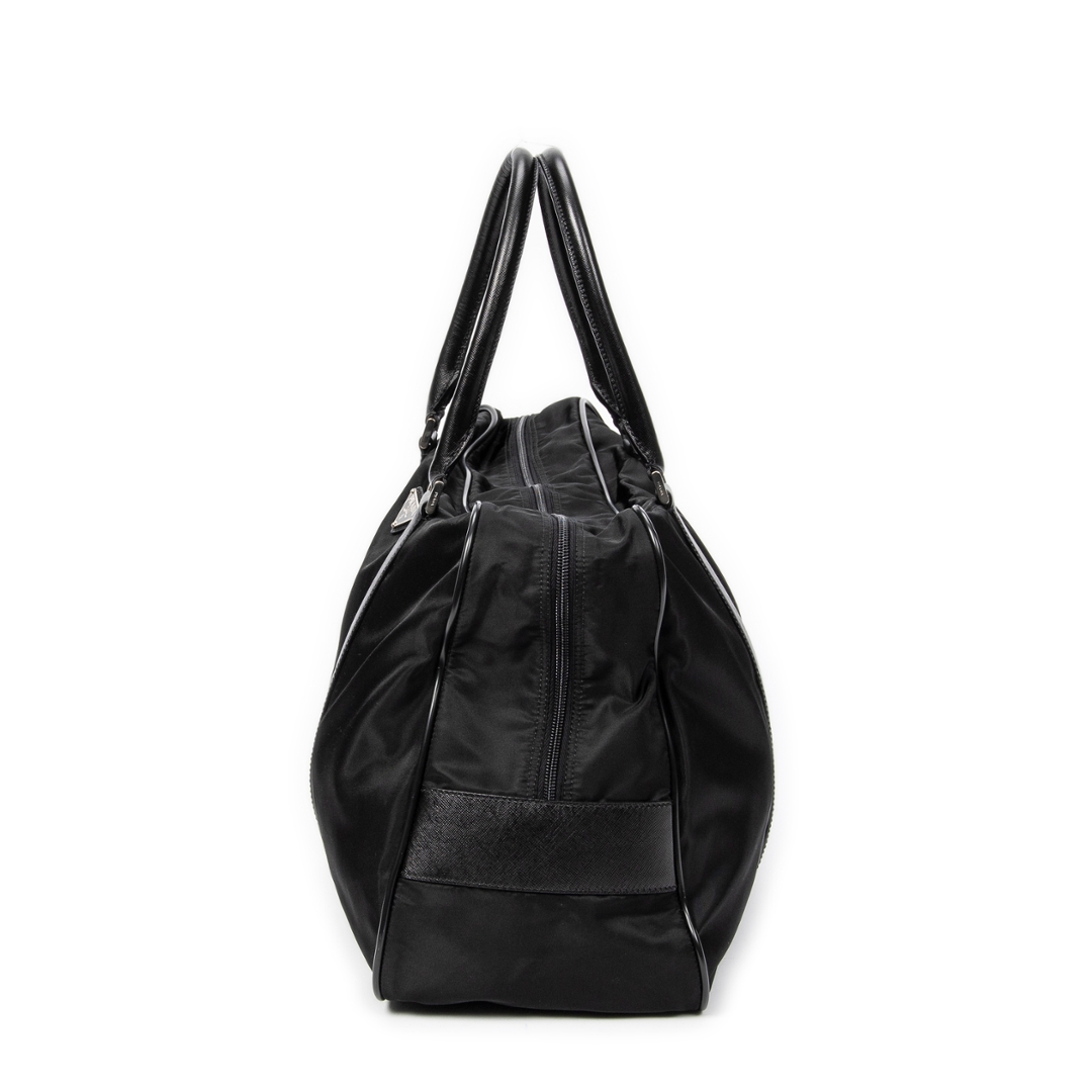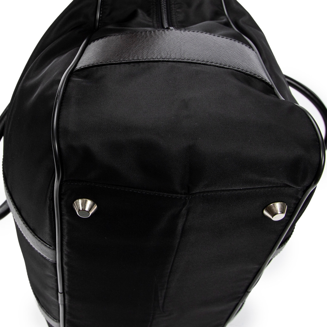 A vintage Prada black canvas Soft Nylon Duffle Bag with a certificate of authenticity. Approximately 30cm height, 45cm width.