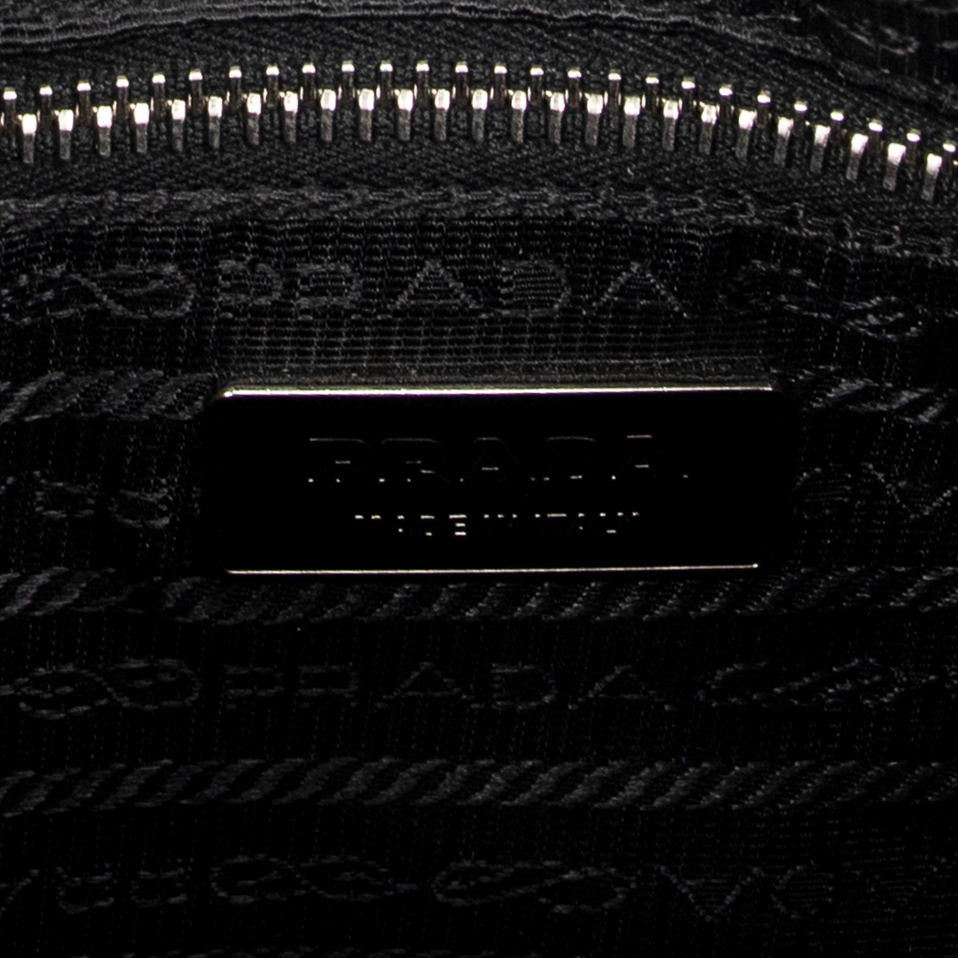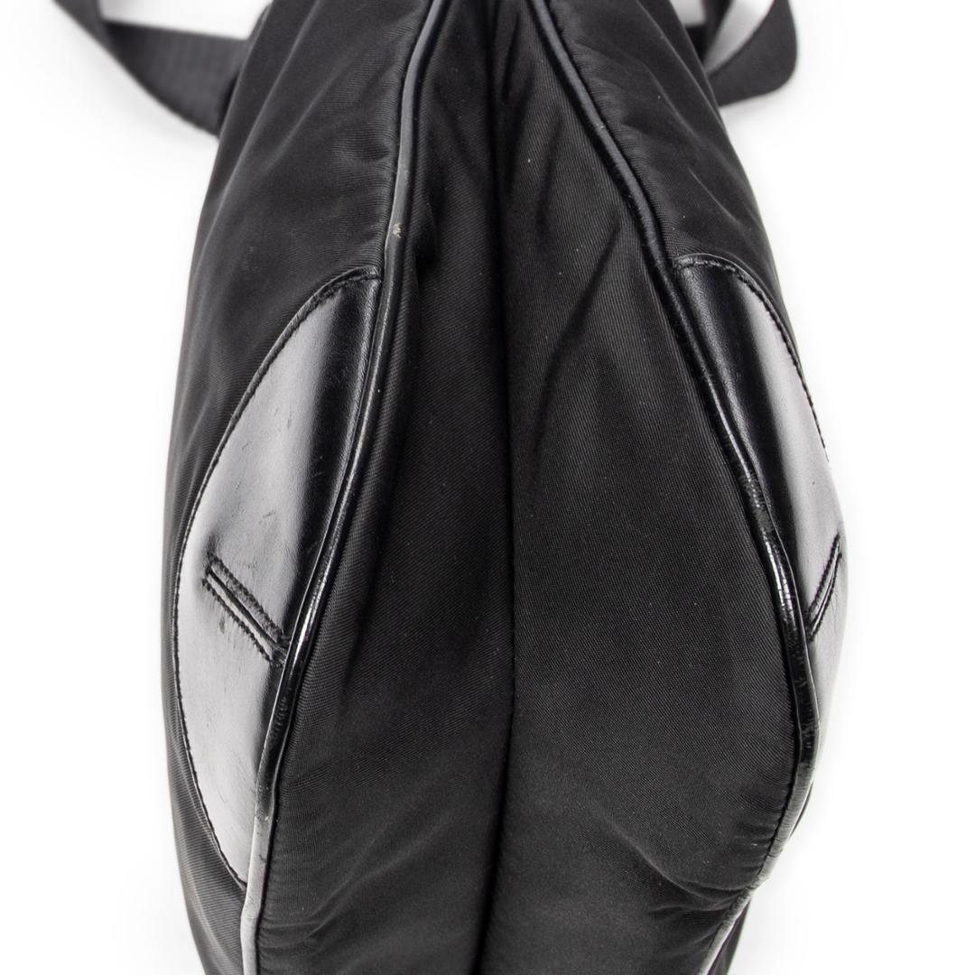 A vintage Prada black canvas Zip Crossbody bag with a certificate of authenticity, Approximately 23cm height, 26cm width.