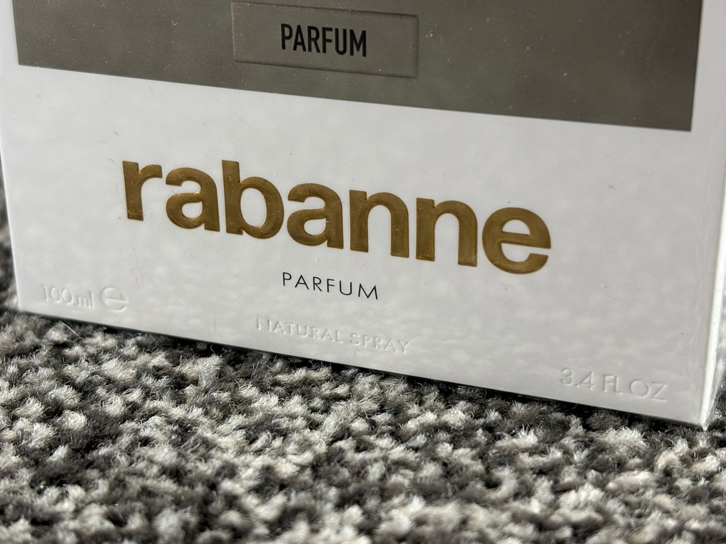 A 100ml bottle of Rabanne Invictus Parfum, presented in its